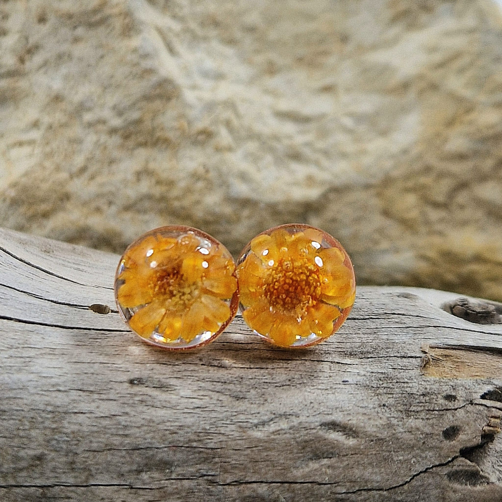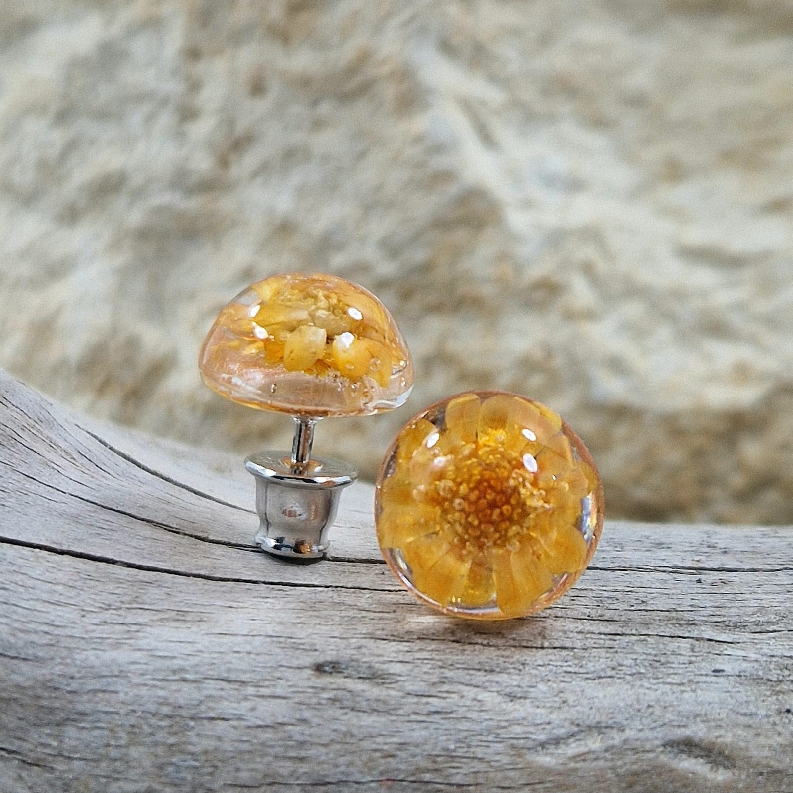 Acești cercei unici, realizați manual, poartă în ei comorile speciale ale naturii, atent încapsulate în rășină rezistentă la UV. Floarea uscată se evidențiază elegant oferind o notă naturală bijuteriei. Împreună cu baza din argint pur 925, acești cercei sunt alegerea perfectă pentru purtarea zilnică, dar și pentru ocazii speciale.