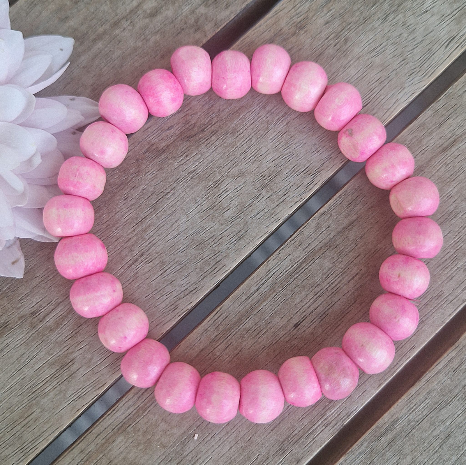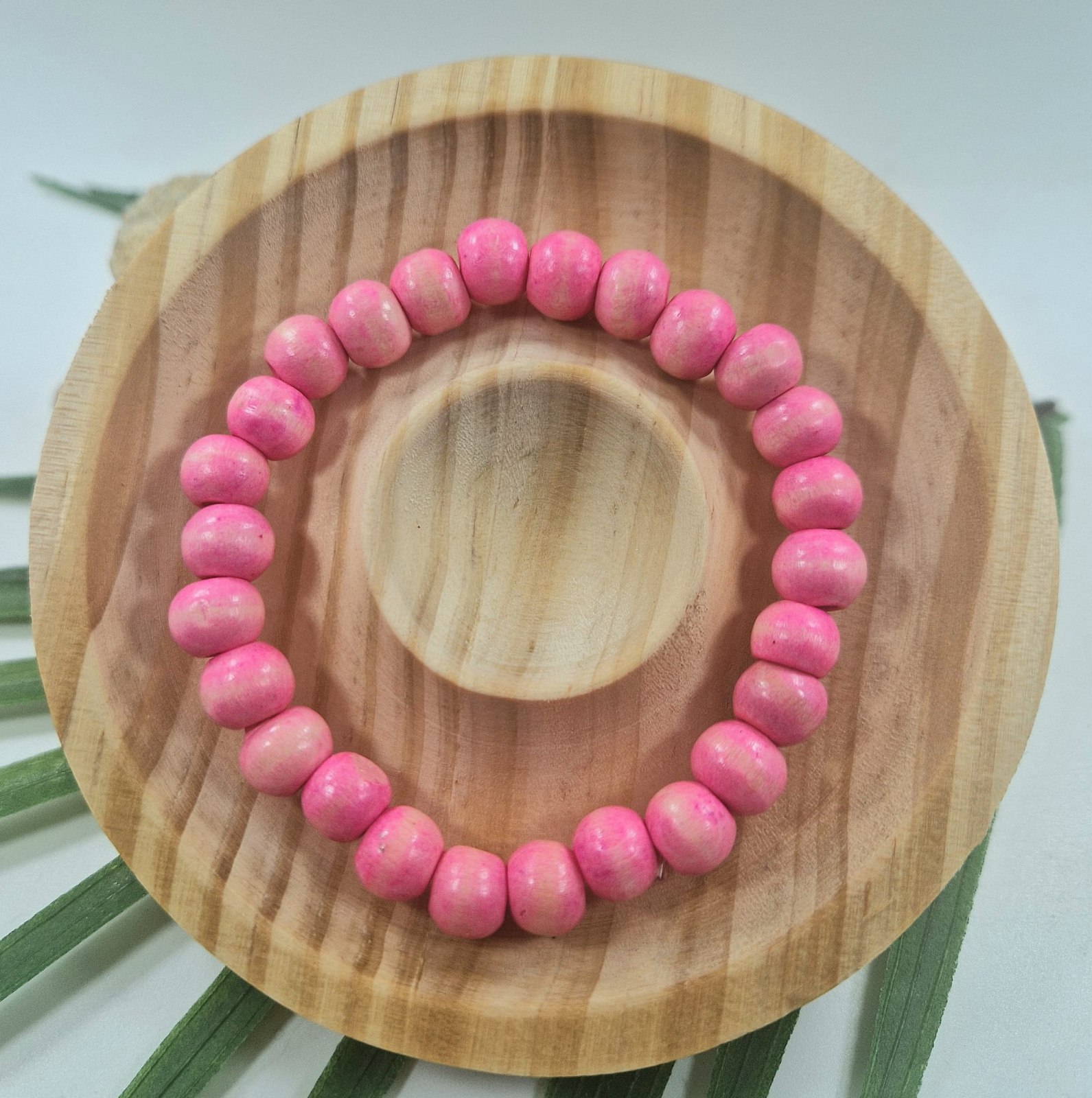 Brățară din lemn - roz, 8 mm