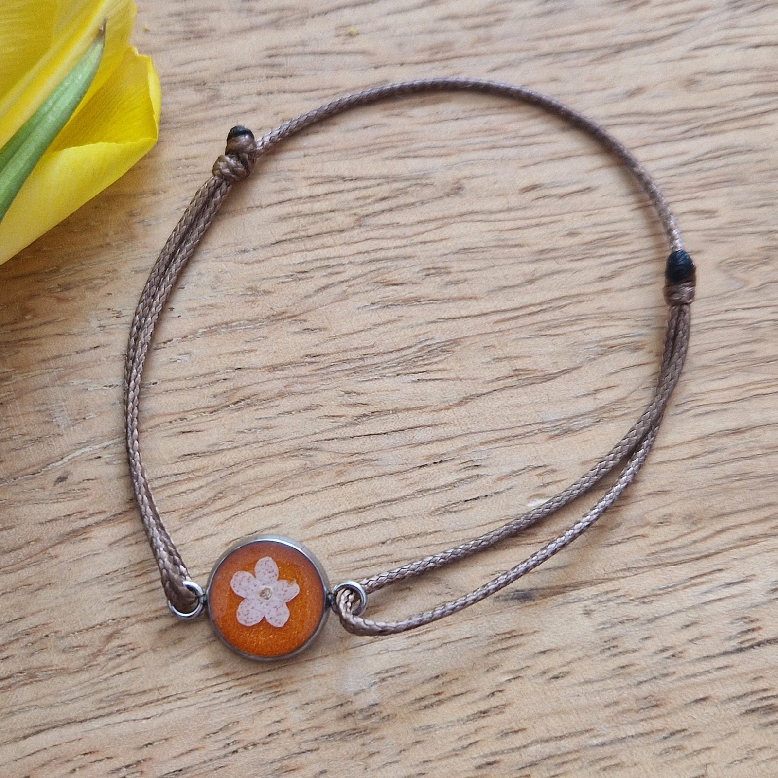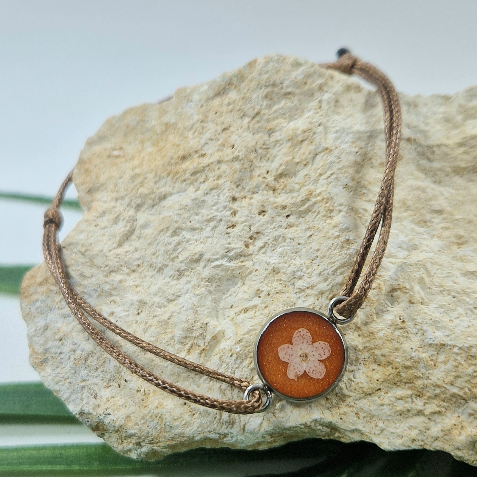 Această brățară realizată manual îmbină farmecul naturii cu tehnologia modernă a rășinii, creând o bijuterie unică și fascinantă. Detaliile delicate ale florii de prun sunt protejate de rășina UV, care garantează că culorile vibrante și frumusețea naturală a florilor vor rămâne intacte. Șnurul reglabil și aliajul metalic asigură o purtare confortabilă și o durabilitate îndelungată.