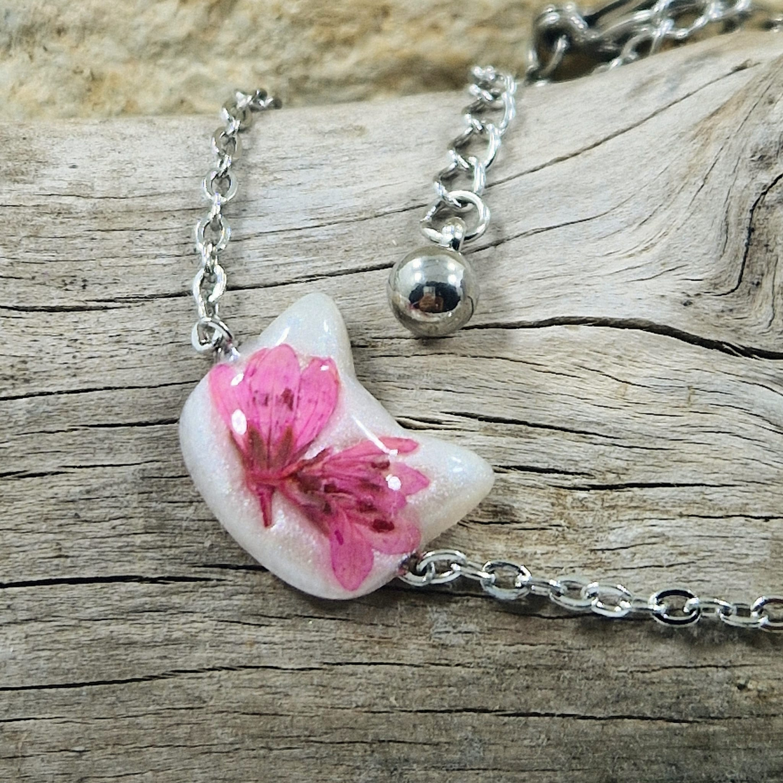 Această brățară de gleznă realizată manual îmbină farmecul naturii cu tehnologia modernă a rășinii, creând o bijuterie unică și fascinantă. Detaliile delicate ale floriilor  sunt protejate de rășina UV, care garantează că culorile vibrante și frumusețea naturală a florilor vor rămâne intacte. Oțelul inoxidabil asigură o purtare sigură și o durabilitate îndelungată.