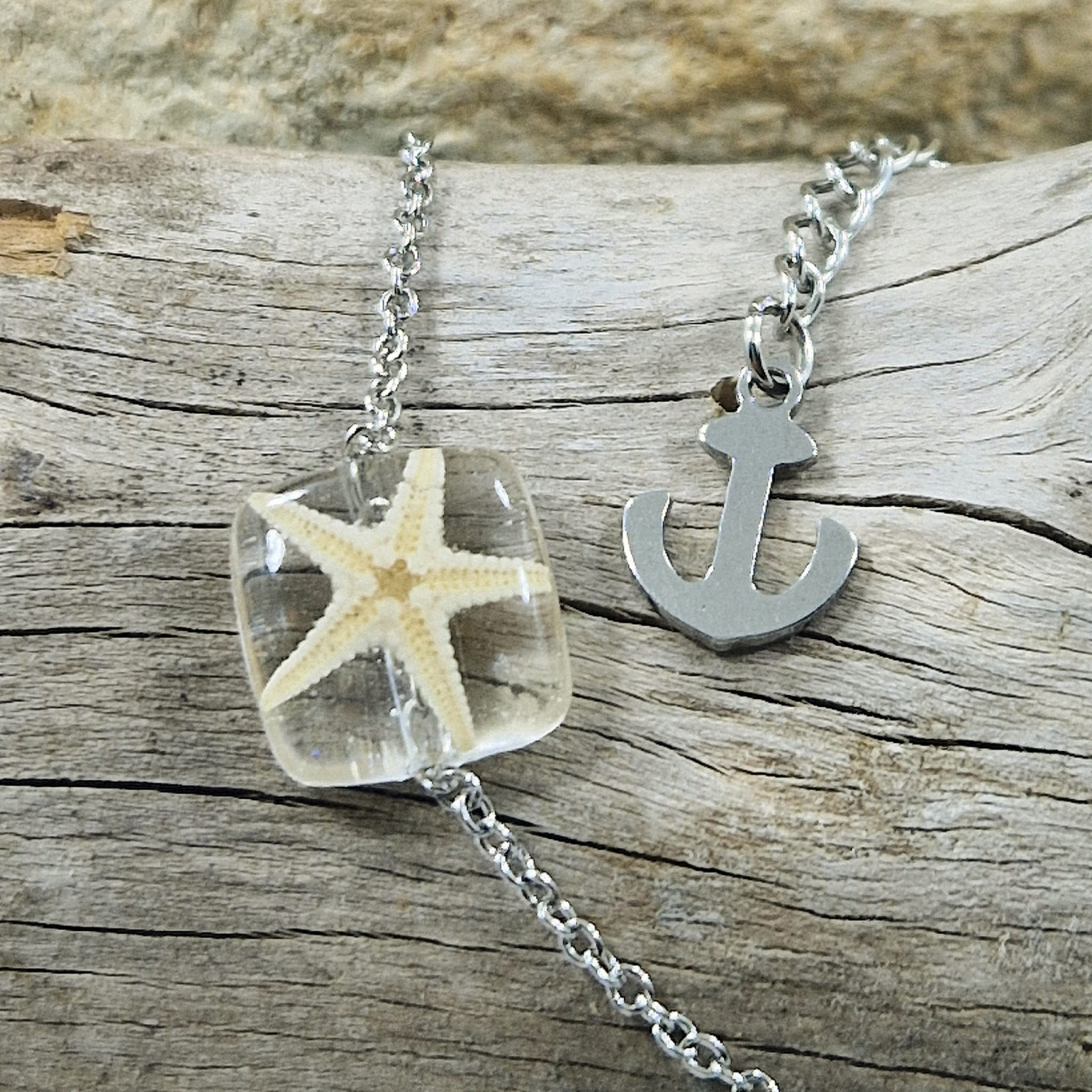 • Materiale utilizate: Rășină rezistentă la UV, stele de mare, oțel inoxidabil – Materiale durabile, dar cu un aspect natural, care oferă longevitate bijuteriei.