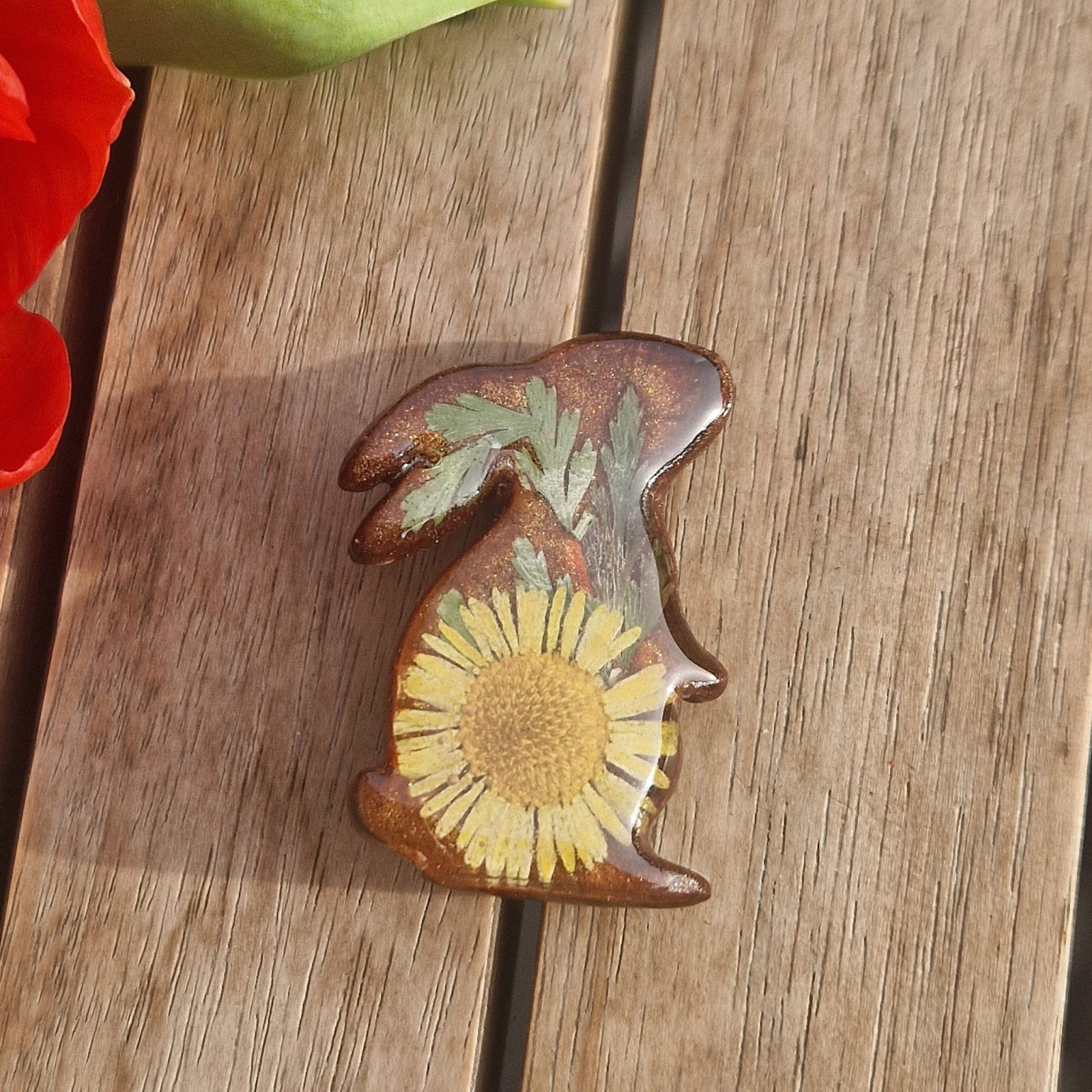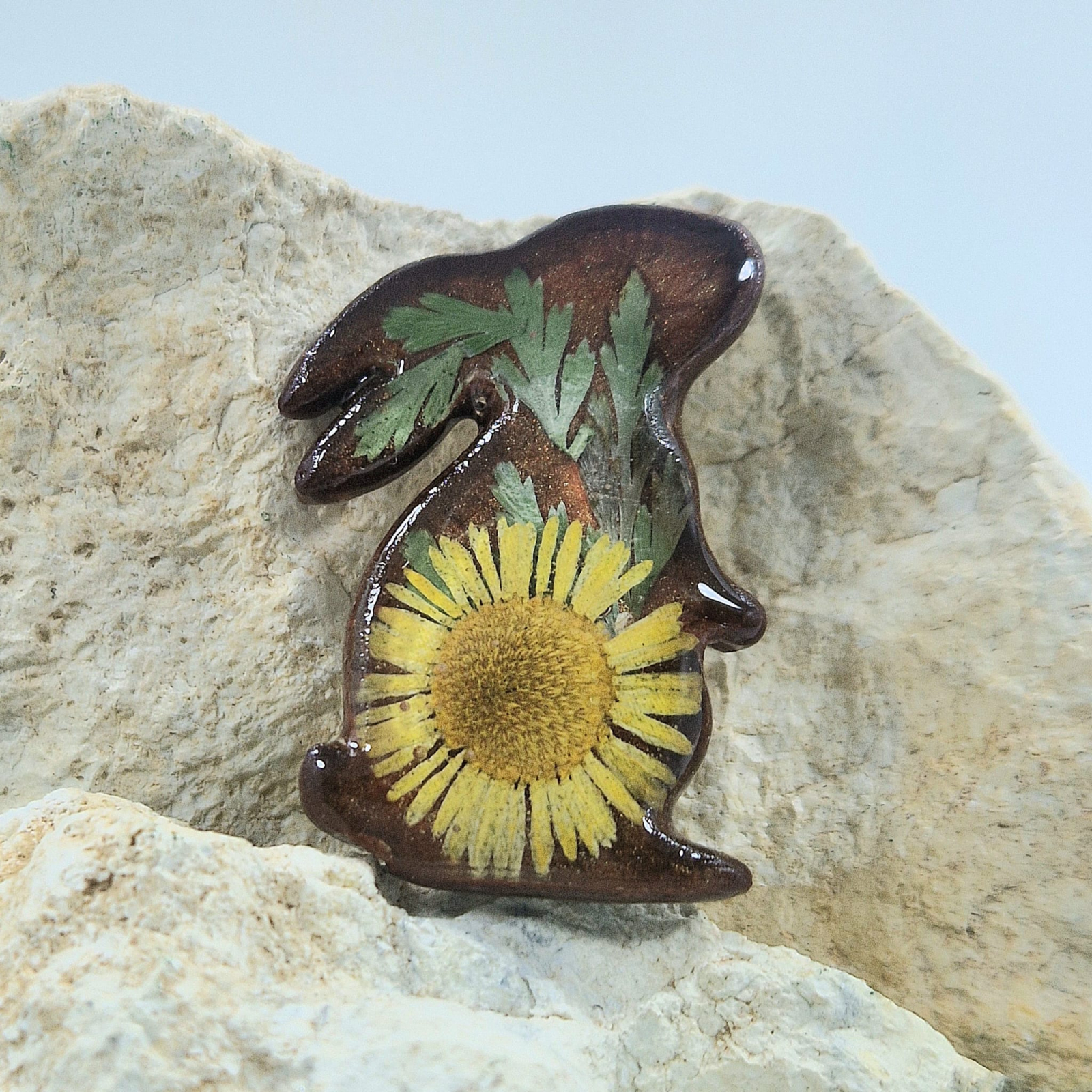 Broșă artizanală – Frumusețea naturii capturată în rășină