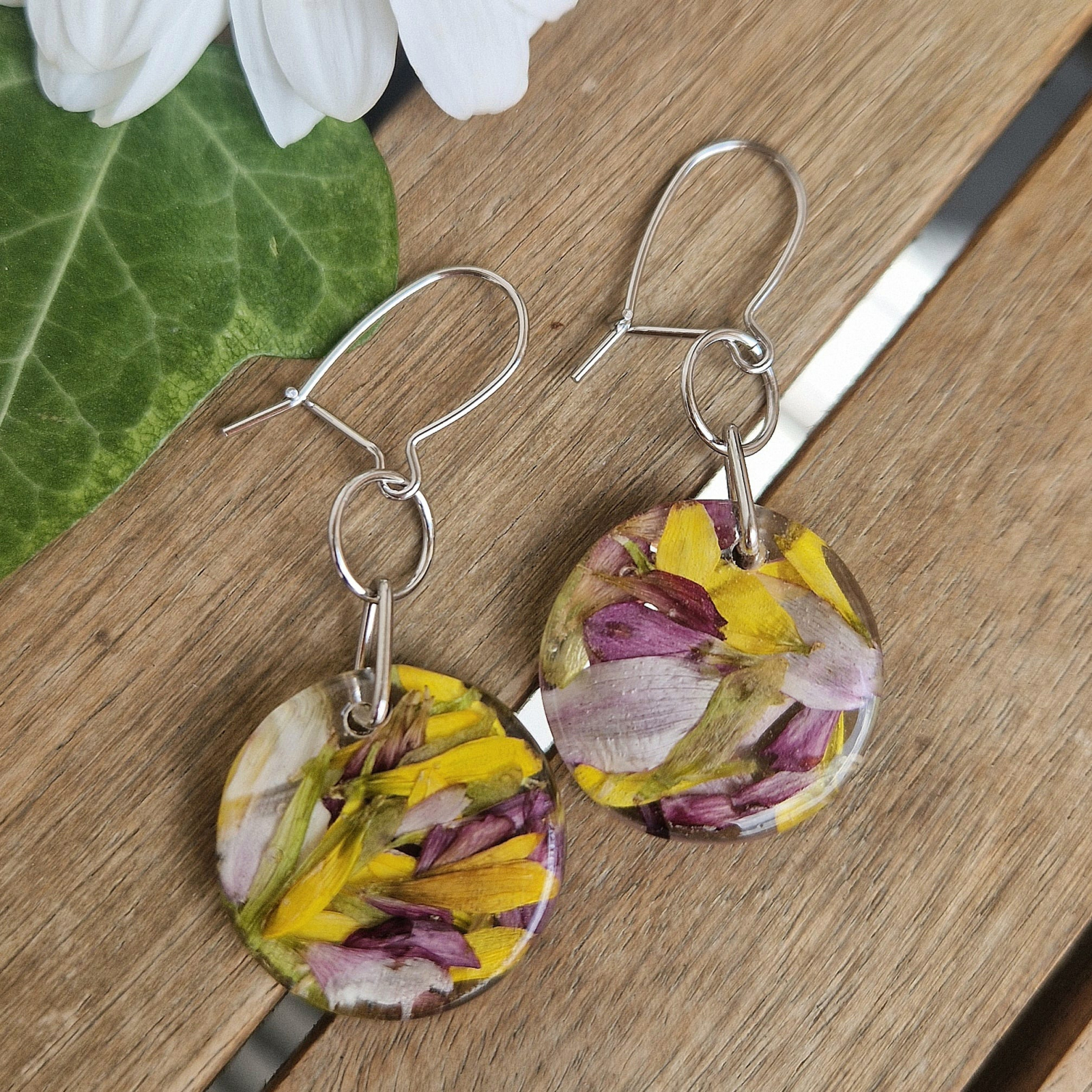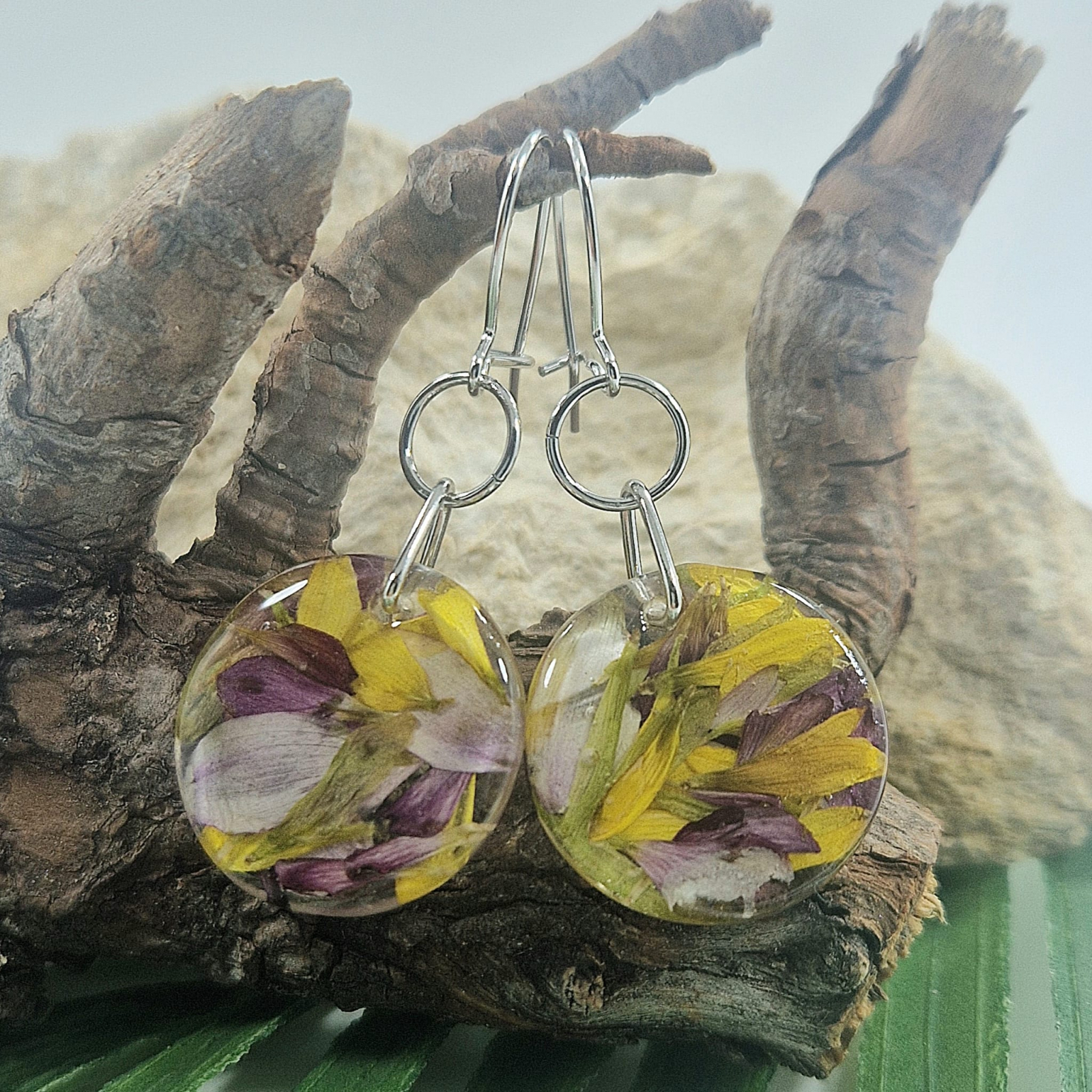 Acești cercei unici, realizați manual, poartă în ei comorile speciale ale naturii, atent încapsulate în rășină rezistentă la UV. Floarea uscată se evidențiază elegant oferind o notă naturală bijuteriei. Împreună cu baza din argint pur 925, acești cercei sunt alegerea perfectă pentru purtarea zilnică, dar și pentru ocazii speciale.