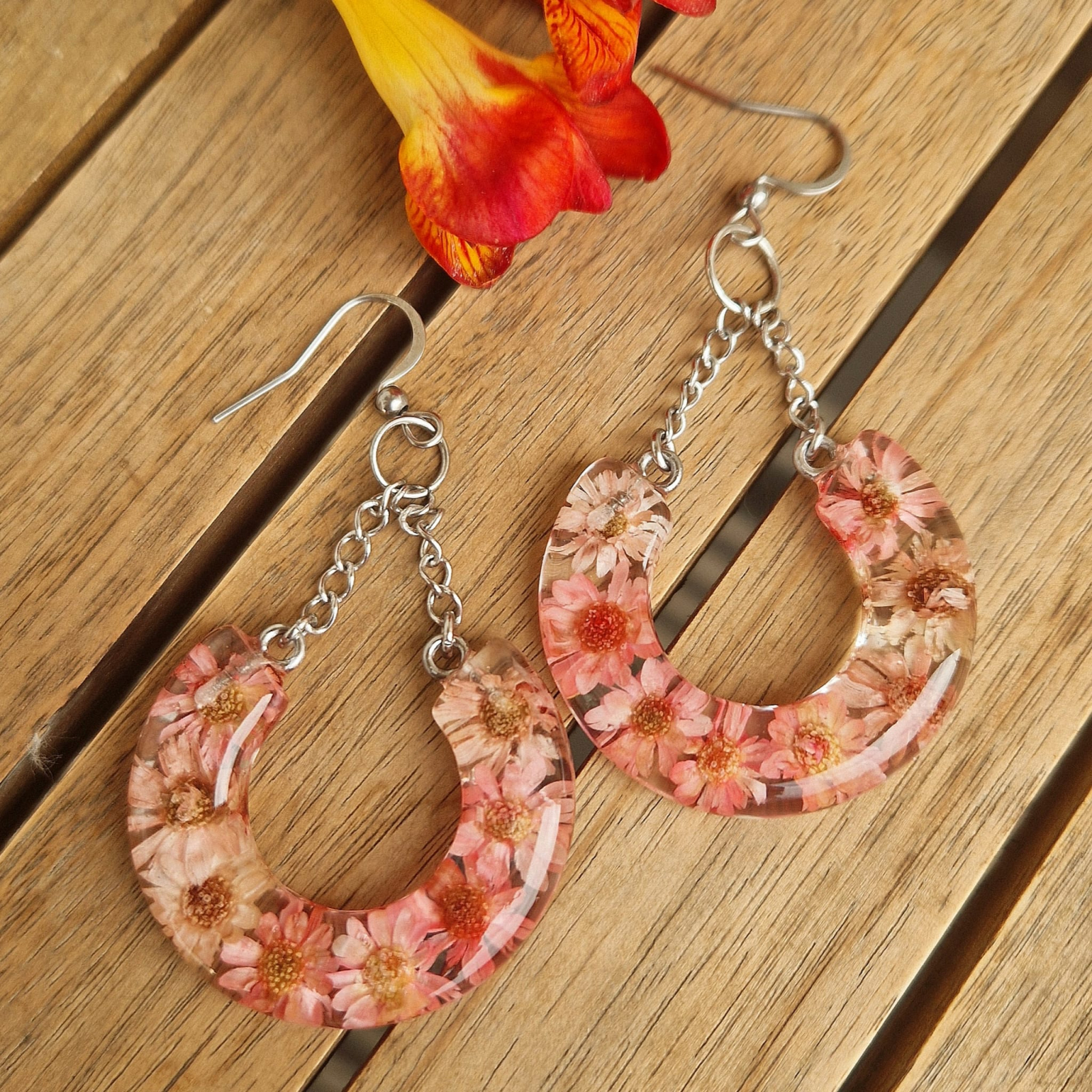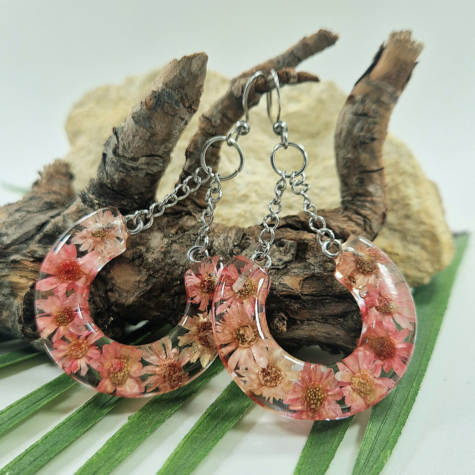 Acești cercei unici, realizați manual, surprind frumusețea pură a naturii. Detaliile fermecătoare ale floriilor si plantelor naturale încorporate în rășină dau viață acestei bijuterii fine, în timp ce rășina rezistentă la UV asigură păstrarea culorilor și prospețimii florii. Oțelul inoxidabil garantează durabilitatea cerceilor, fiind ușor de purtat atât zi de zi, cât și la ocazii speciale, atunci când dorești să-ți evidențiezi stilul apropiat de natură. Oțelul inoxidabil este un material extrem de durabil, hipoalergenic, rezistent la coroziune și își păstrează strălucirea, ceea ce îl face o alegere excelentă pentru bijuterii pe termen lung.