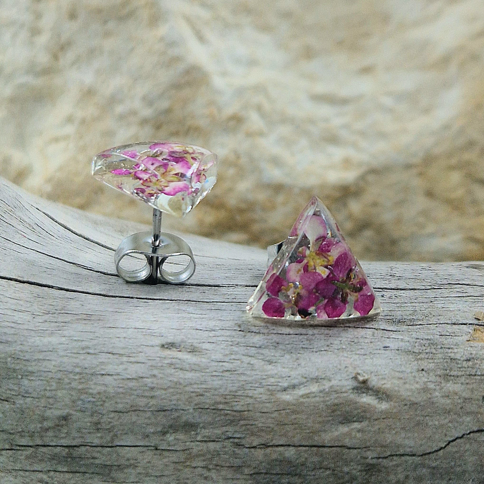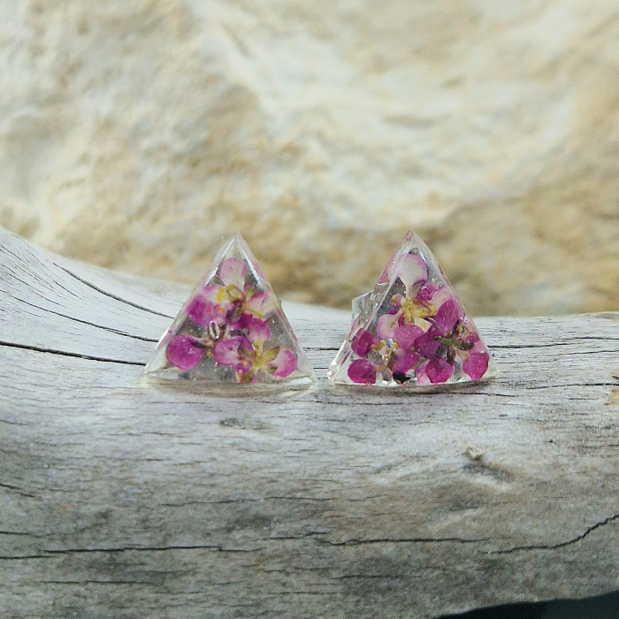 Fiecare pereche de cercei este unică, datorită elementelor naturale încapsulate în rășină. Rășina cristalină, rezistentă la UV, asigură că florile nu își pierd strălucirea în timp și nu se îngălbenesc. Rășina este ușoară, oferind un efect similar sticlei, dar fără a fi fragilă, garantând astfel durabilitatea și confortul pe termen lung. În plus, bijuteria nu necesită întreținere specială. Mai multe informații despre întreținere găsiți la secțiunea „Întreținere și garanție”.