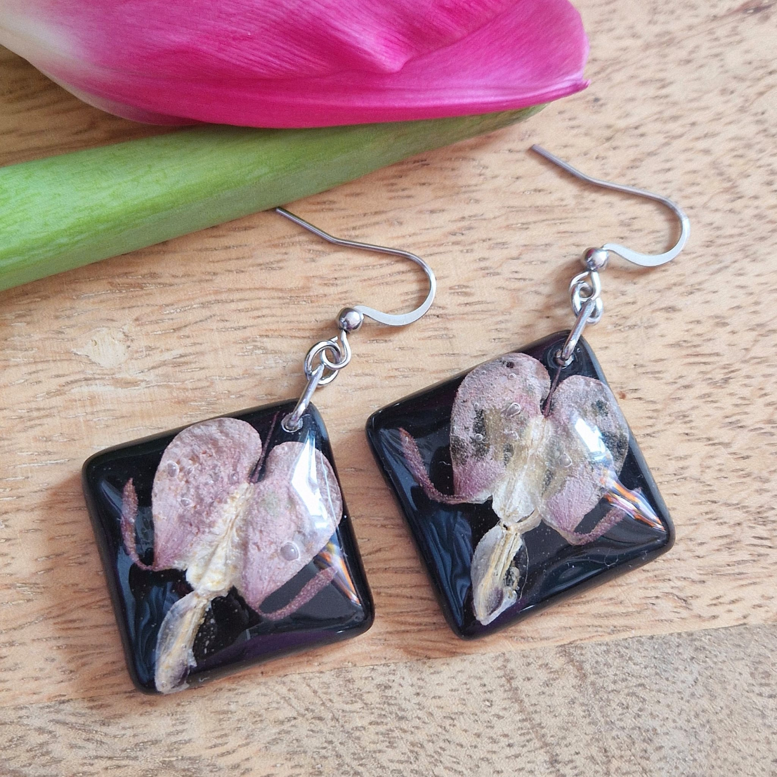Fiecare pereche de cercei este unică, datorită elementelor naturale încapsulate în rășină. Rășina cristalină, rezistentă la UV, asigură că florile nu își pierd strălucirea în timp și nu se îngălbenesc. Rășina este ușoară, oferind un efect similar sticlei, dar fără a fi fragilă, garantând astfel durabilitatea și confortul pe termen lung. În plus, bijuteria nu necesită întreținere specială. Mai multe informații despre întreținere găsiți la secțiunea „Întreținerea și îngrijirea bijuteriilor și accesoriilor”.