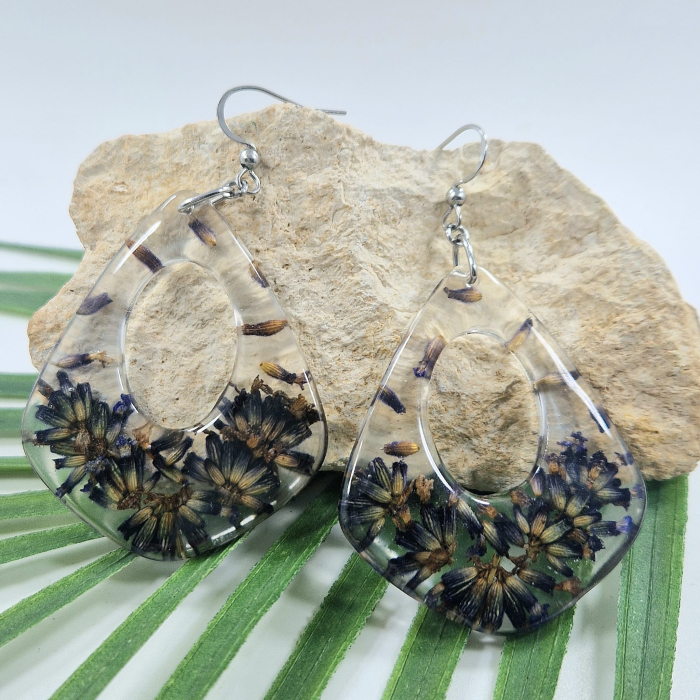 Fiecare pereche de cercei este unică, datorită elementelor naturale încapsulate în rășină. Rășina cristalină, rezistentă la UV, asigură că florile nu își pierd strălucirea în timp și nu se îngălbenesc. Rășina este ușoară, oferind un efect similar sticlei, dar fără a fi fragilă, garantând astfel durabilitatea și confortul pe termen lung. În plus, bijuteria nu necesită întreținere specială. Mai multe informații despre întreținere găsiți la secțiunea „Întreținerea și îngrijirea bijuteriilor și accesoriilor”.