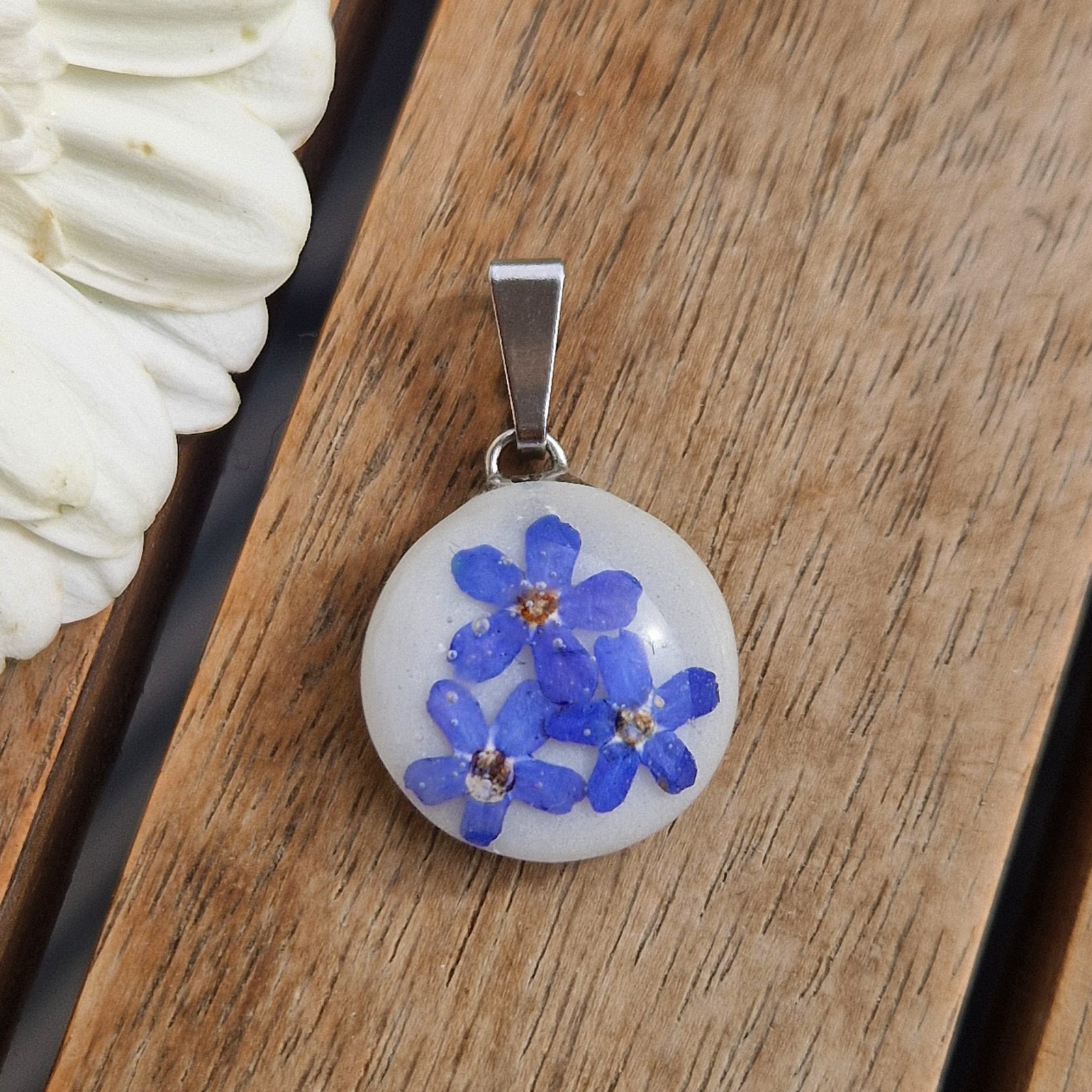• Materiale folosite: Rășină rezistentă la UV, nu-mă-uita, oțel inoxidabil – Materiale naturale, durabile și prietenoase cu pielea.