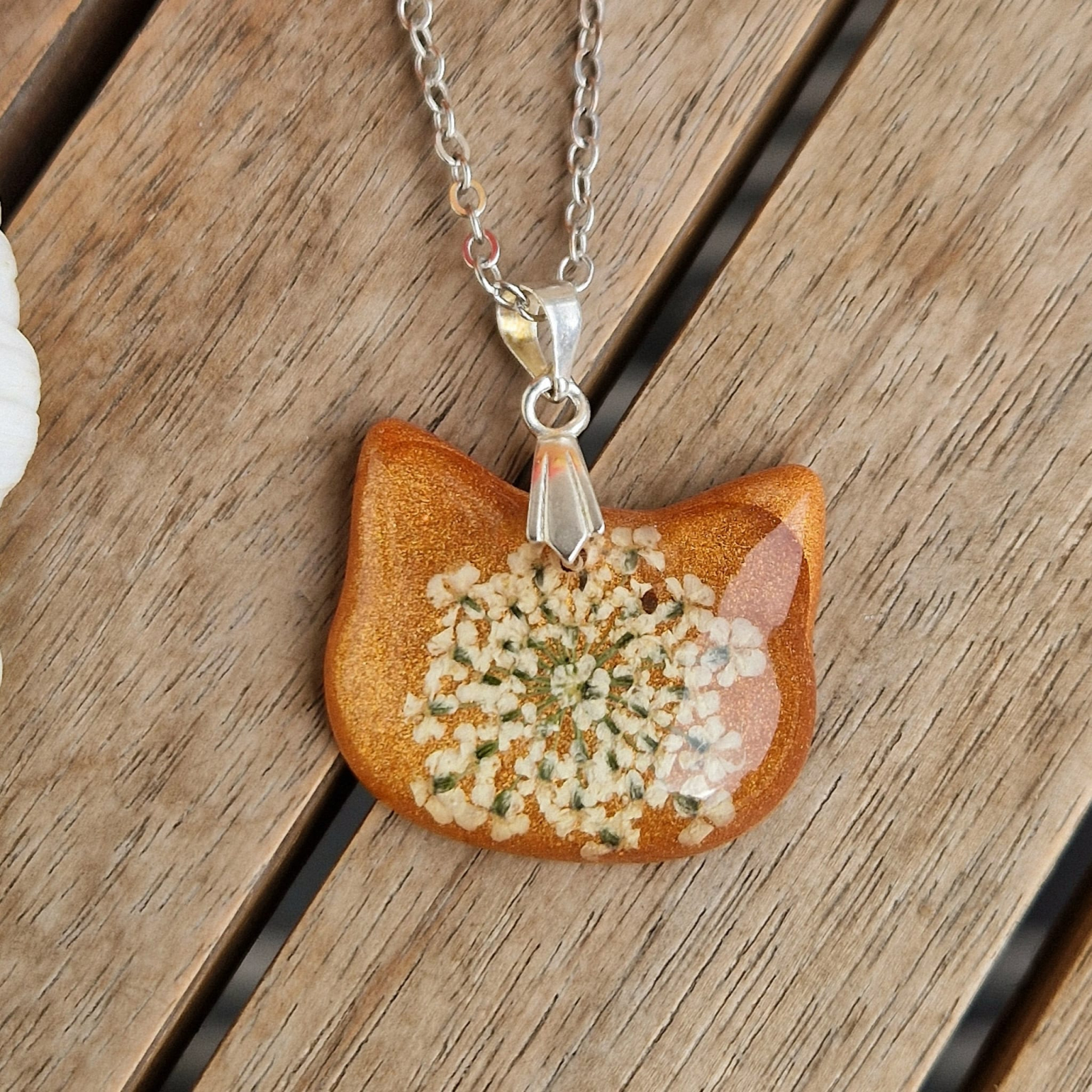 Colier artizanal cu flori naturale și rășină – Bijuterie inspirată de natură