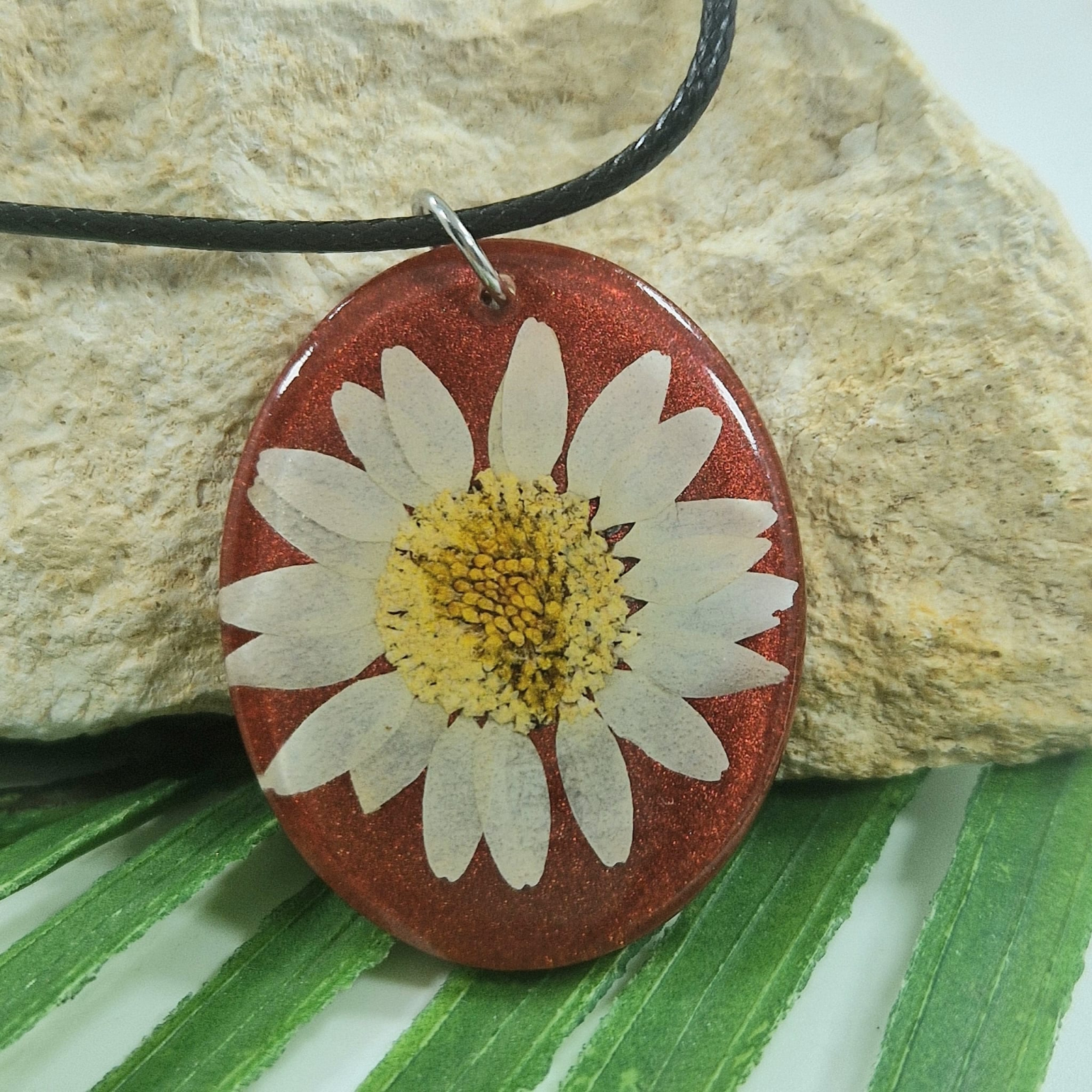 • Rășină rezistentă la UV, margaretă, aliaj metalic, snur cerat