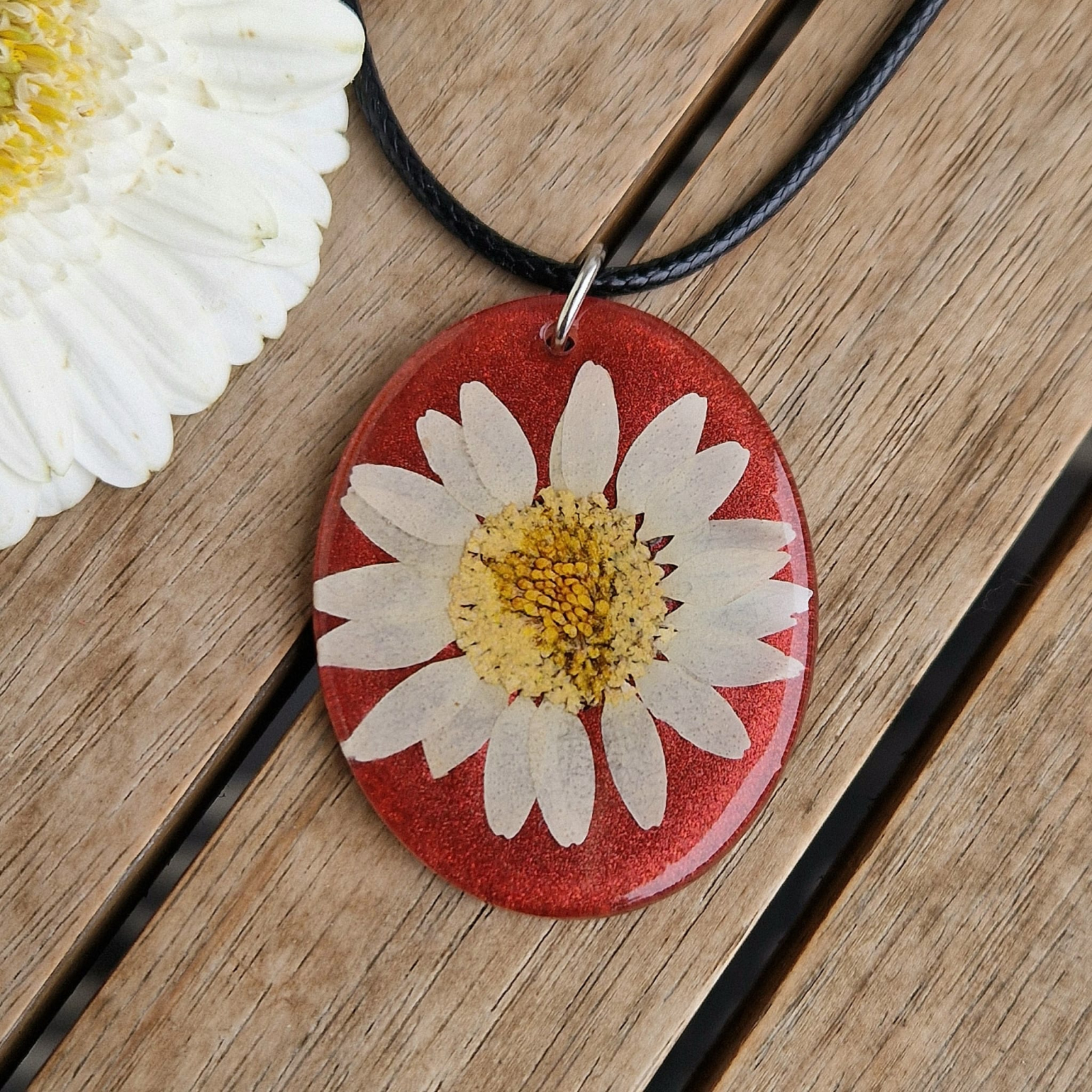 Colier artizanal cu flori naturale și rășină – Bijuterie inspirată de natură