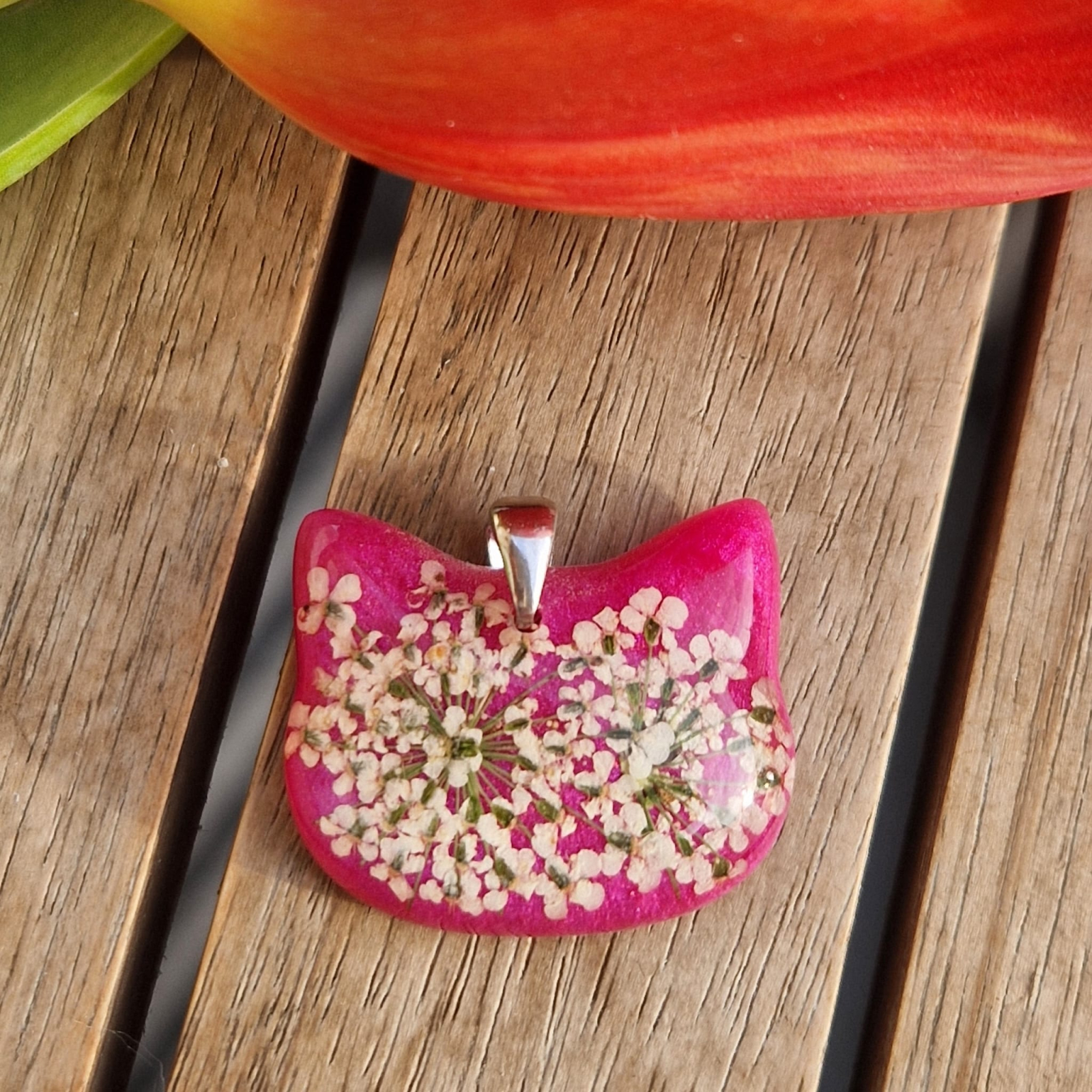 Acest pandantiv unic, realizat manual, îmbină comorile speciale ale naturii într-un design elegant. Confecționat din rășină rezistentă la UV și flori naturale uscare, acest pandantiv păstrează frumusețea și farmecul naturii. Nuanțele naturale a pandantivului se potrivește perfect cu detaliile din argint 925, oferindu-i un aspect rafinat și durabil. Ideal pentru purtarea de zi cu zi sau pentru ocazii speciale, acest pandantiv evidențiază stilul unic și apropierea de natură a celui care îl poartă.