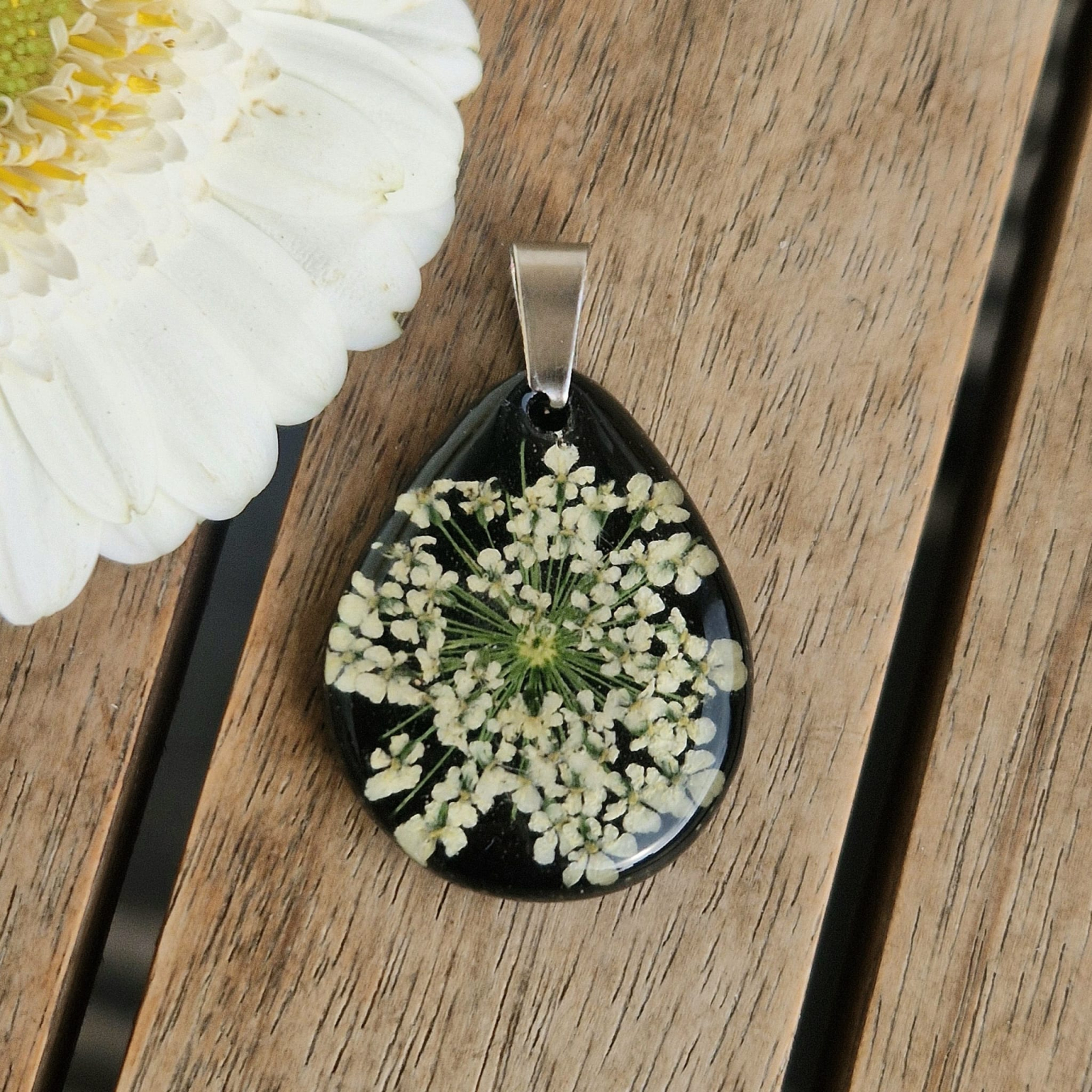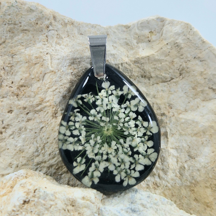 Acest pandantiv unic, realizaț manual, surprind frumusețea pură a naturii. Detaliile fermecătoare ale plantelor naturale încorporate în rășină dau viață acestei bijuterii fine, în timp ce rășina rezistentă la UV asigură păstrarea culorilor și prospețimii florii. Oțelul inoxidabil garantează durabilitatea cerceilor, fiind ușor de purtat atât zi de zi, cât și la ocazii speciale, atunci când dorești să-ți evidențiezi stilul apropiat de natură. Oțelul inoxidabil este un material extrem de durabil, hipoalergenic, rezistent la coroziune și își păstrează strălucirea, ceea ce îl face o alegere excelentă pentru bijuterii pe termen lung.