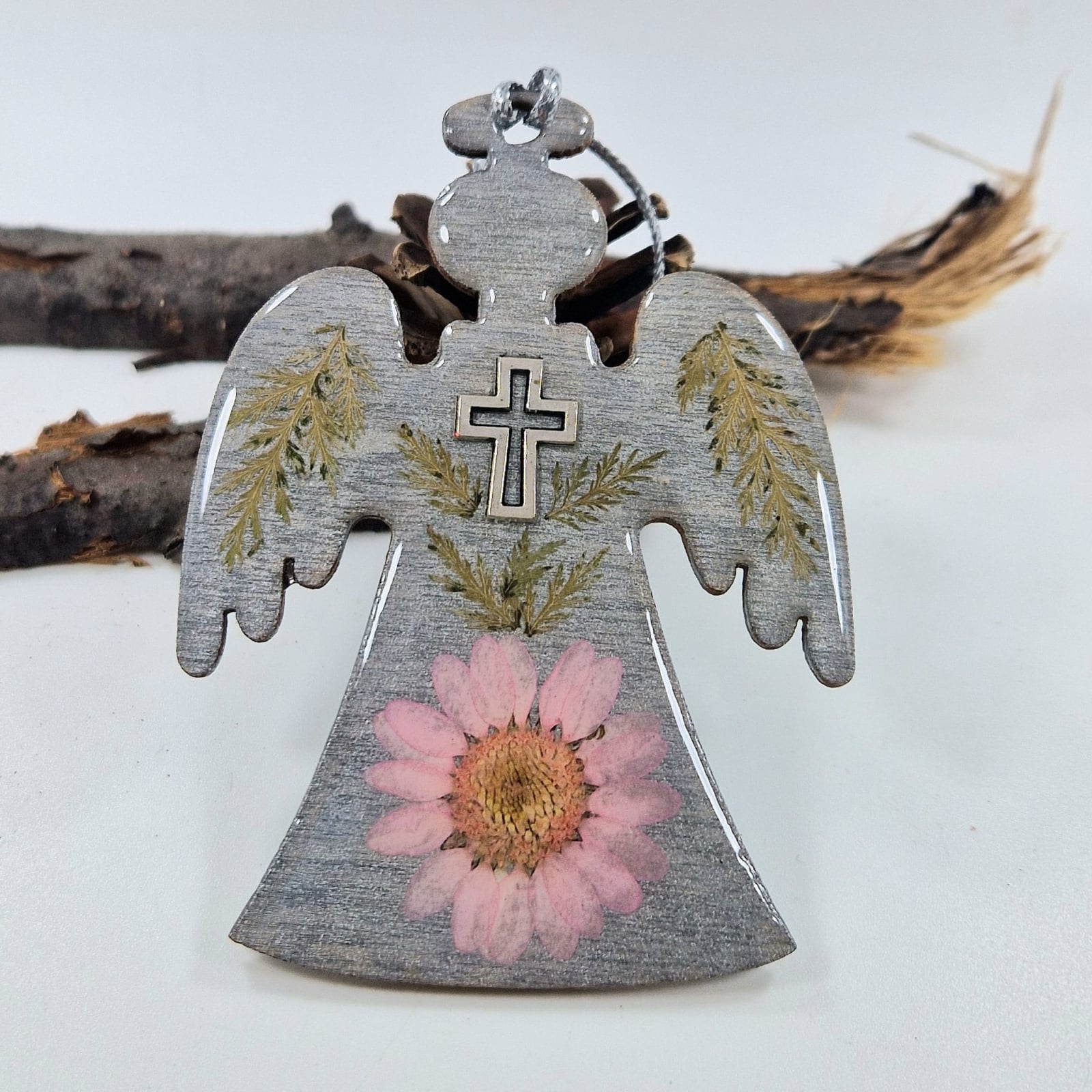 Decor de Crăciun - Îngerași din lemn cu flori naturale