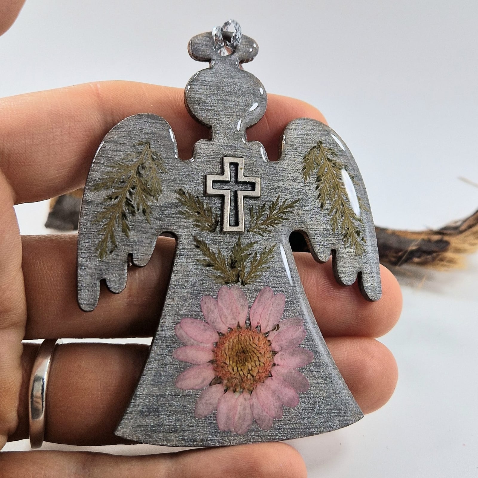 🎄 Decor de Crăciun realizat manual – Îngerași din lemn cu flori naturale 🎄