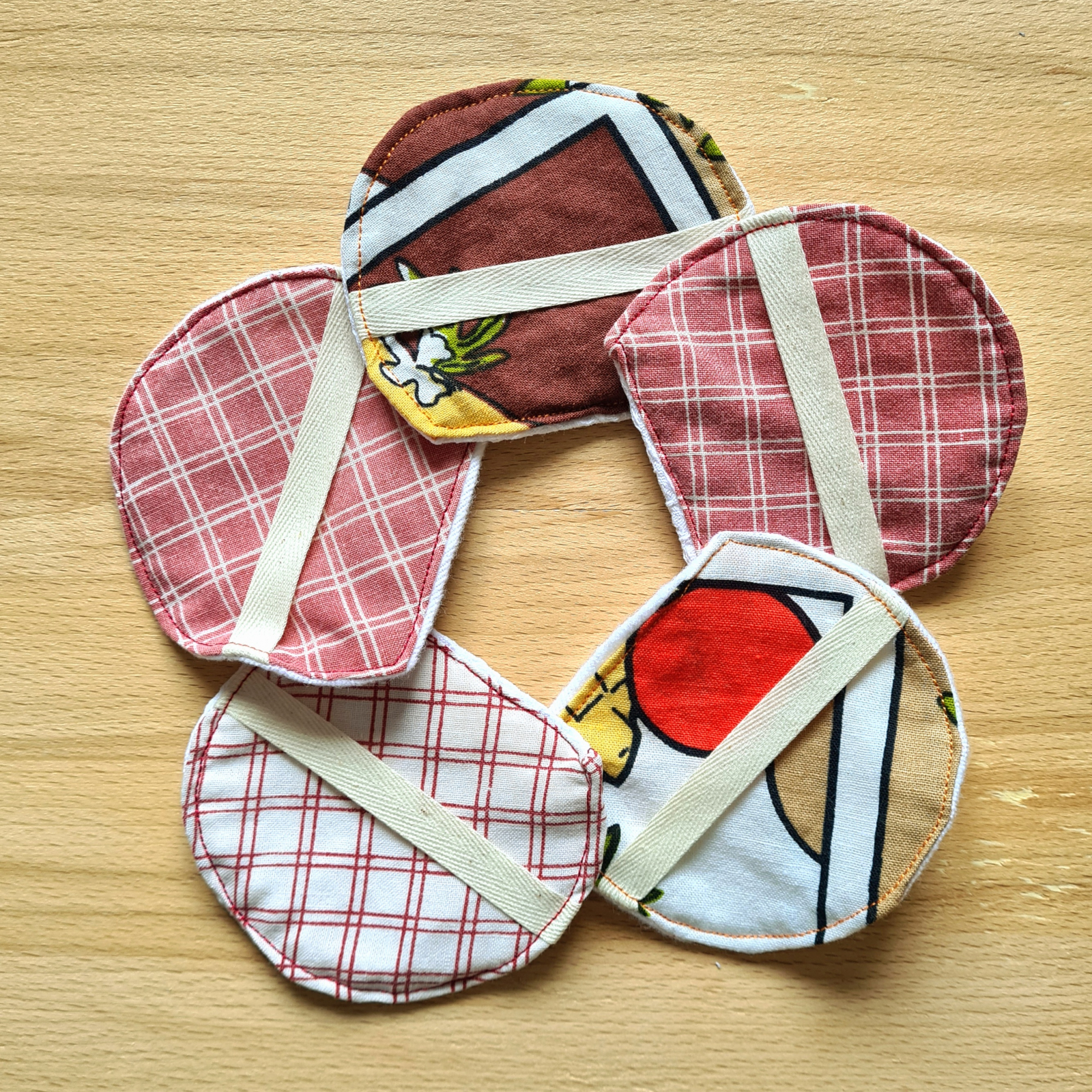 Dischetele sunt prevăzute cu o bandă de bumbac pentru o manevrare mai ușoară. Sunt durabile și rezistente la multiple spălări, chiar și în mașina de spălat.