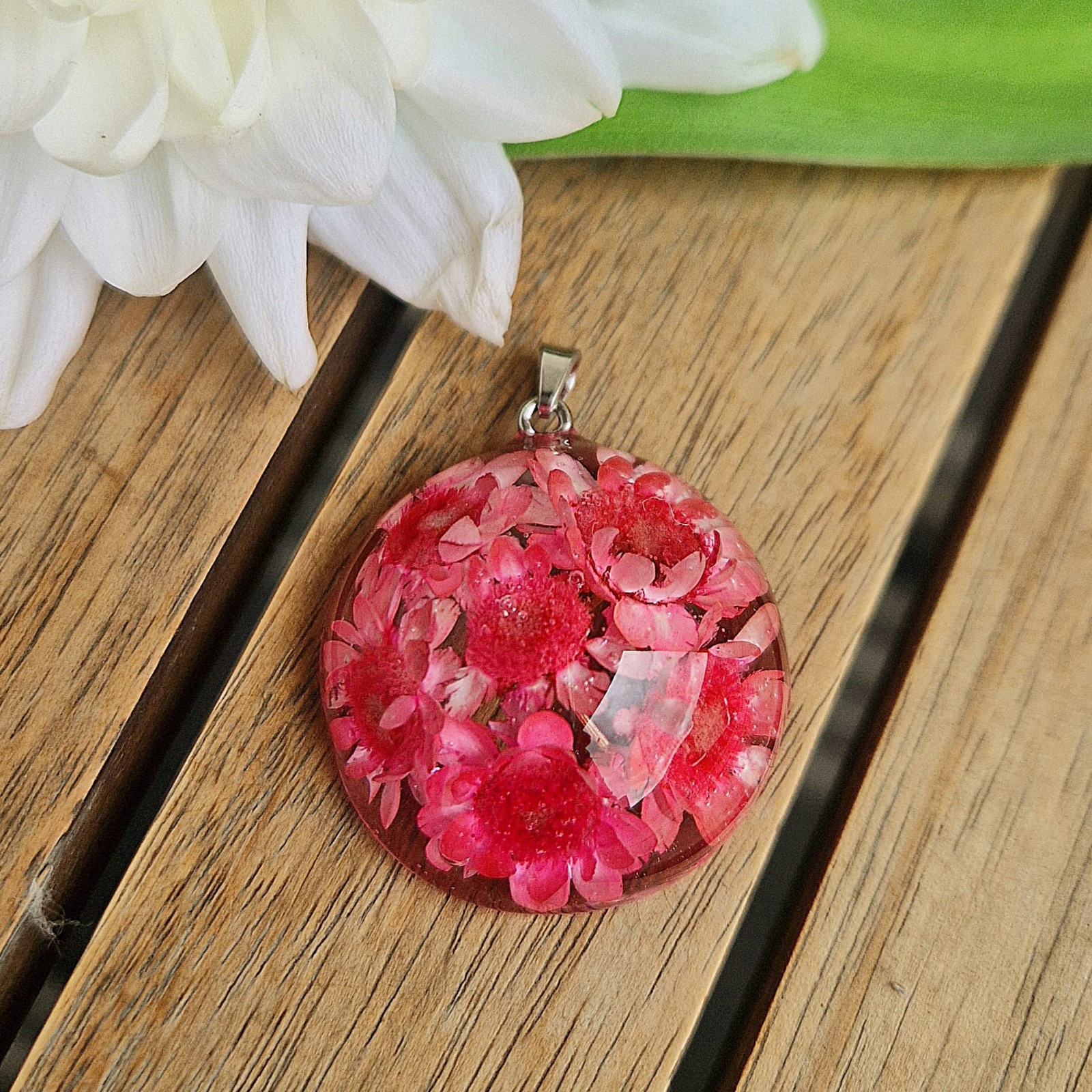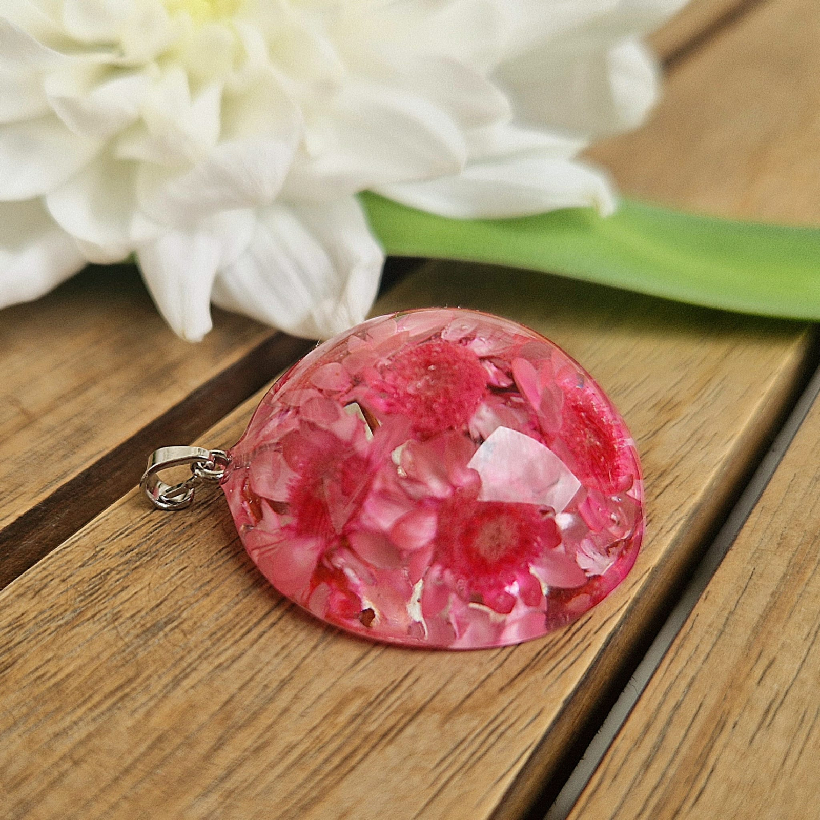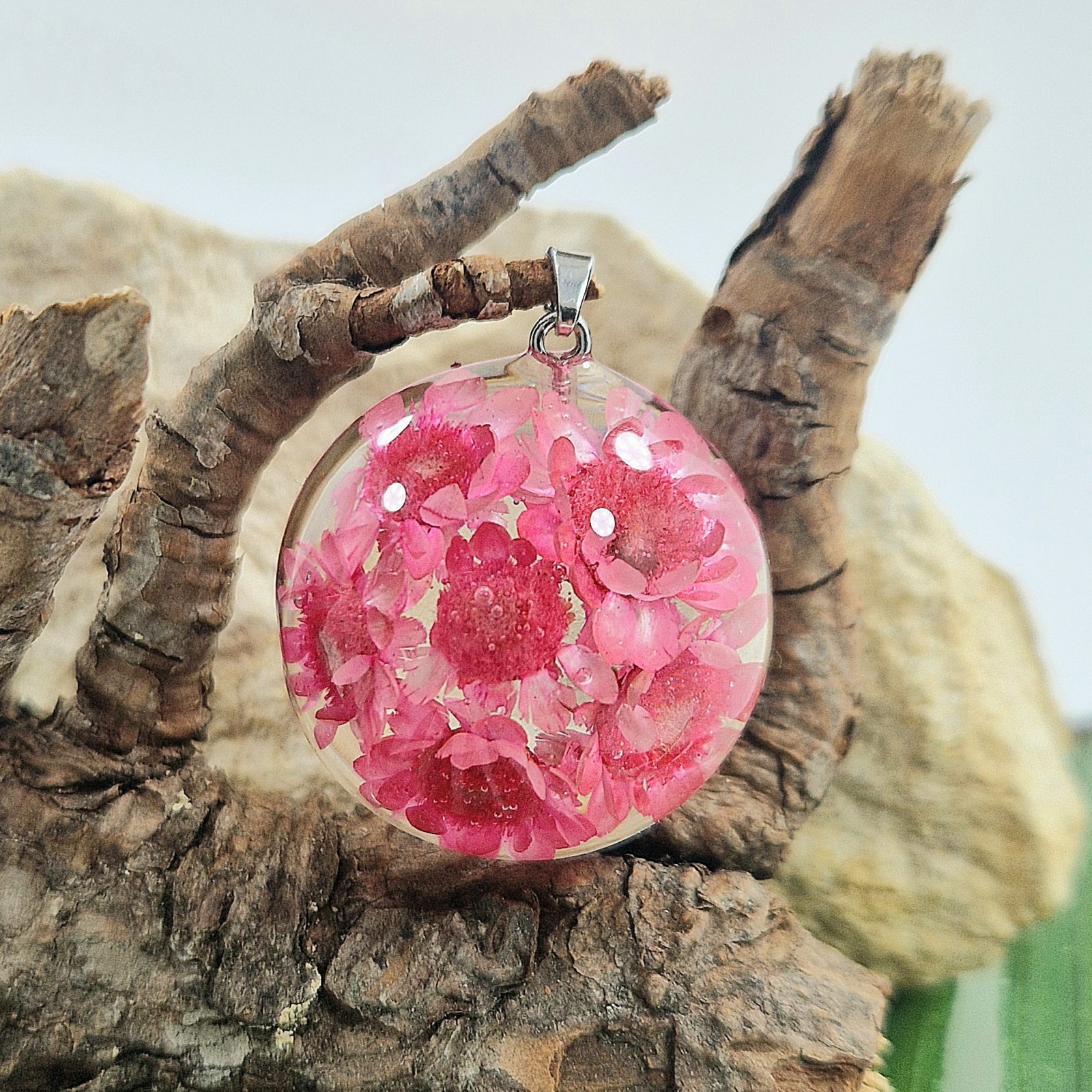 - Felhasznált anyagok: UV-álló gyanta, szárított szalmavirág, 925-ös tisztaságú ezüst – Természetes, tartós és bőrbarát anyagok.