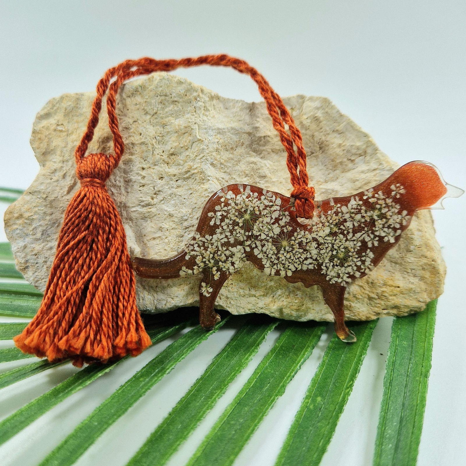 Minden darab megismételhetetlen, hiszen a természetes növények formája és szerkezete eltérő. A gyanta kristálytiszta, UV-álló és üvegszerű hatást kelt, mégis tartós és nem törékeny. Nem igényel különleges karbantartást – további információkat a „Karbantartás és az ékszerek ápolása” részben találsz.