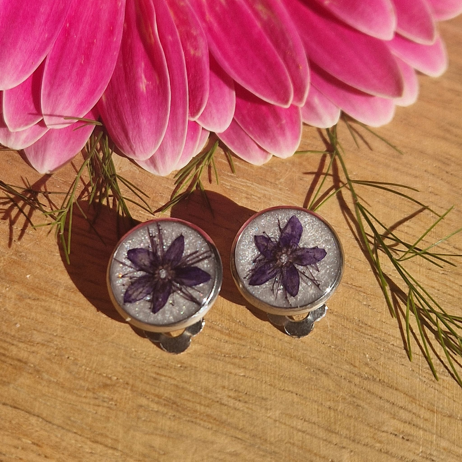 Kézműves fülbevaló – A természet varázsa gyantába zárva