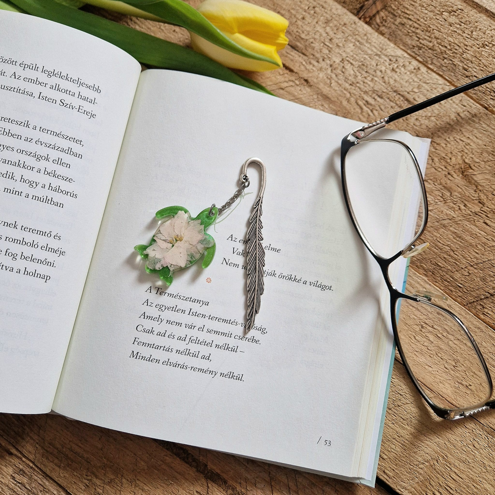 Kézműves könyvjelző a természet ihlette szépségből és gyantából – Egyedi, természetes kiegészítő az olvasáshoz