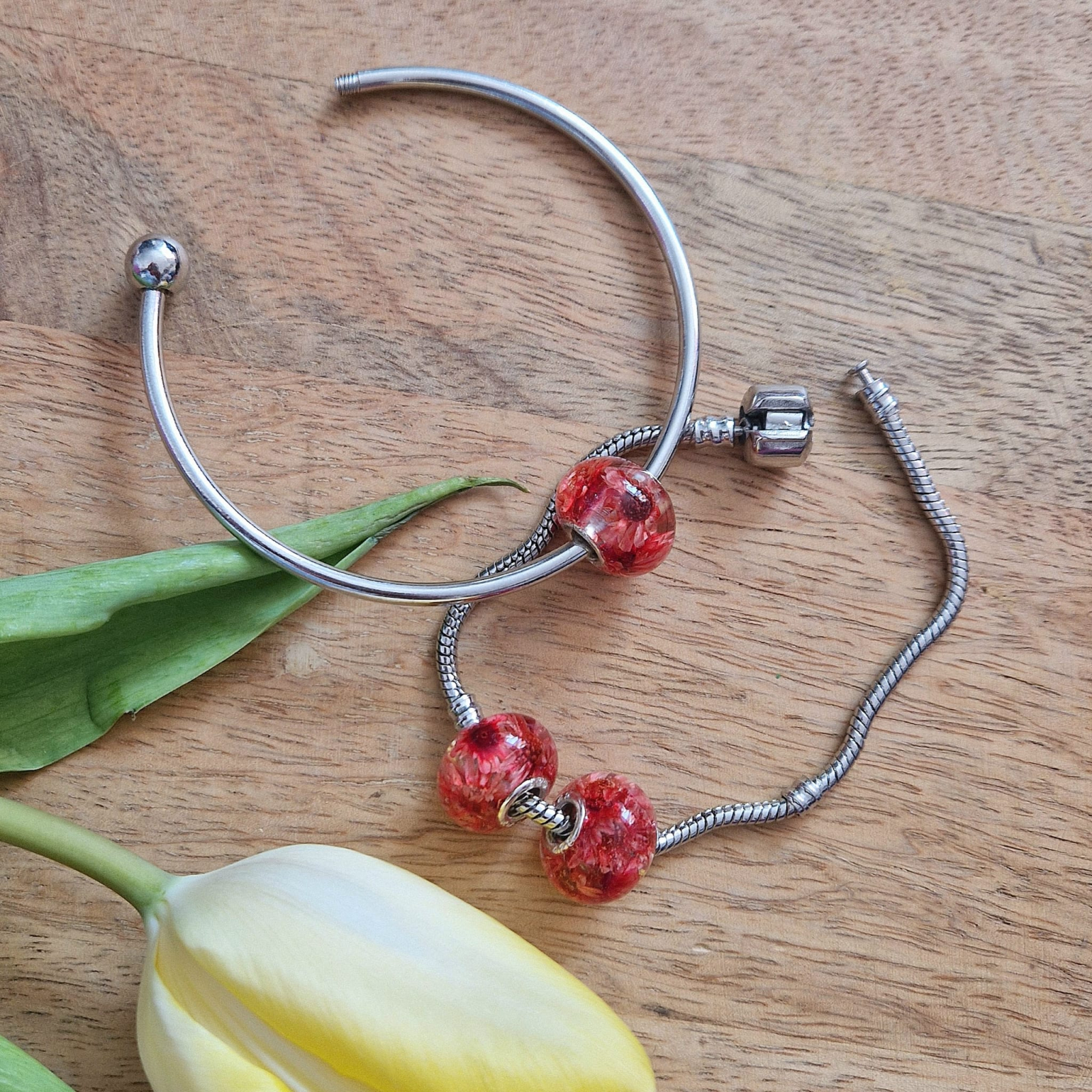 Minden charm esetében a virágok elhelyezkedése kissé eltérő, mivel nincs két egyforma virág. Rendeléseddel egy a képen láthatóhoz nagyon hasonló gyöngyöt kapsz, de nem pontosan ugyanazt a darabot.