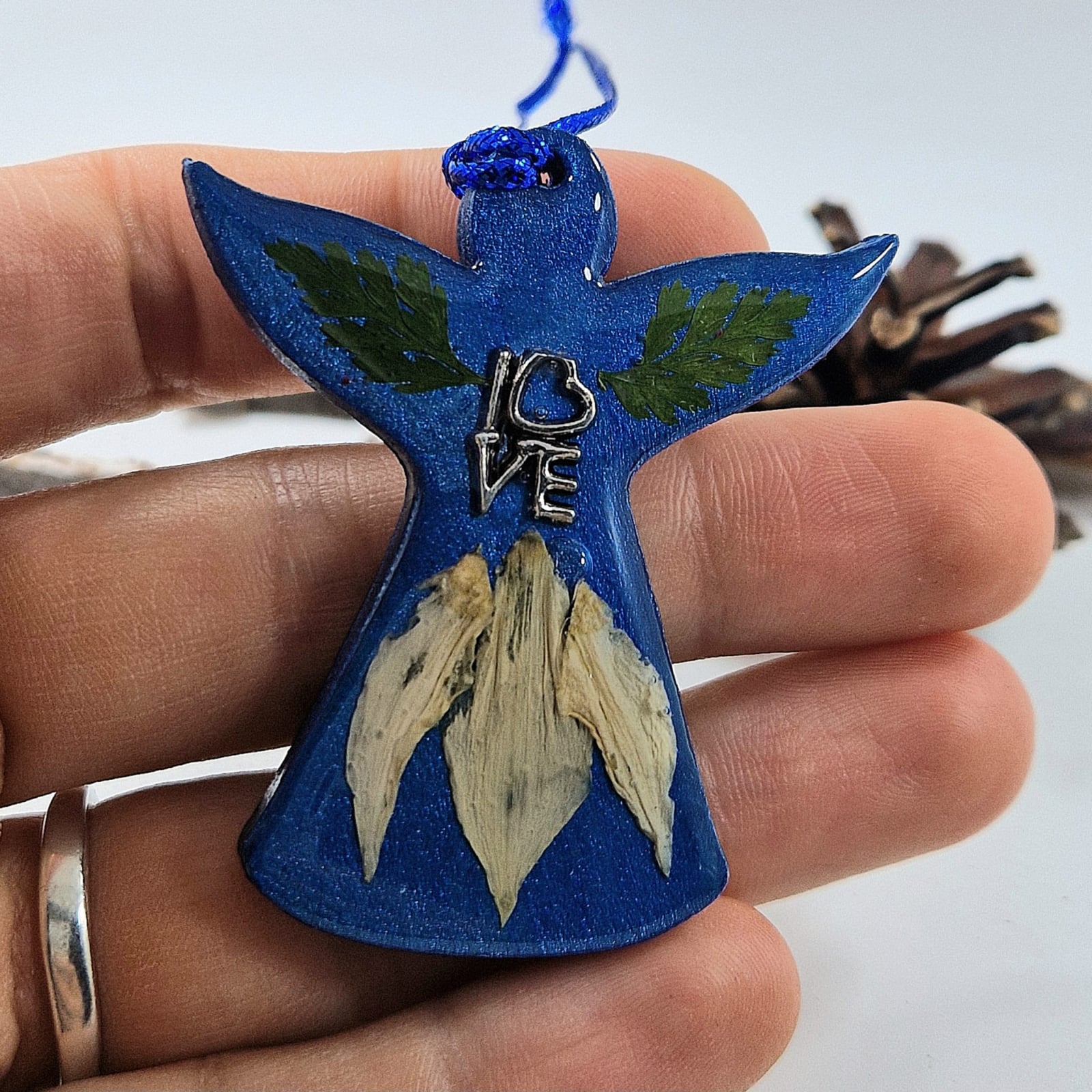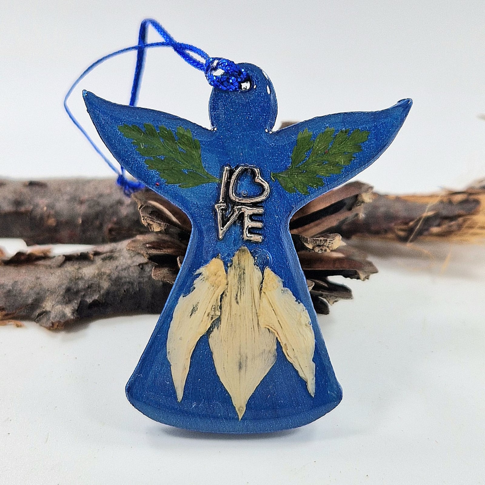 🎄 Kézzel készült karácsonyi angyaldísz – Igazi virágokkal, fából 🎄