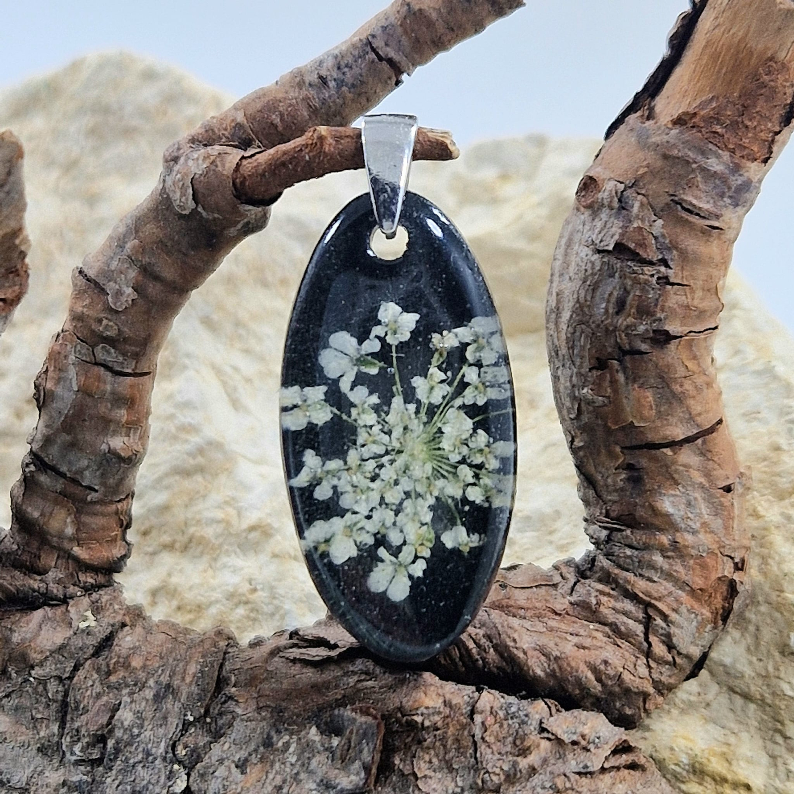 Kézműves medál – Természet ihlette ékszer gyantából és  ezüstből
