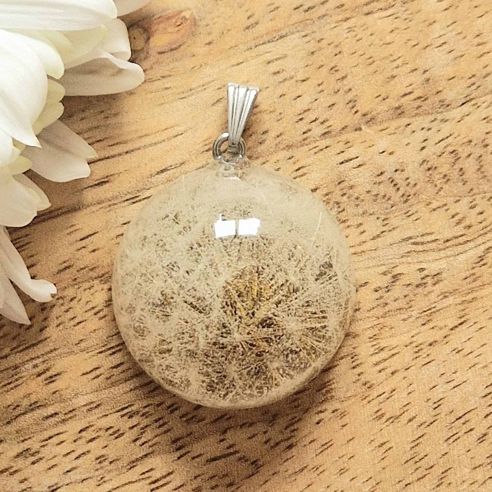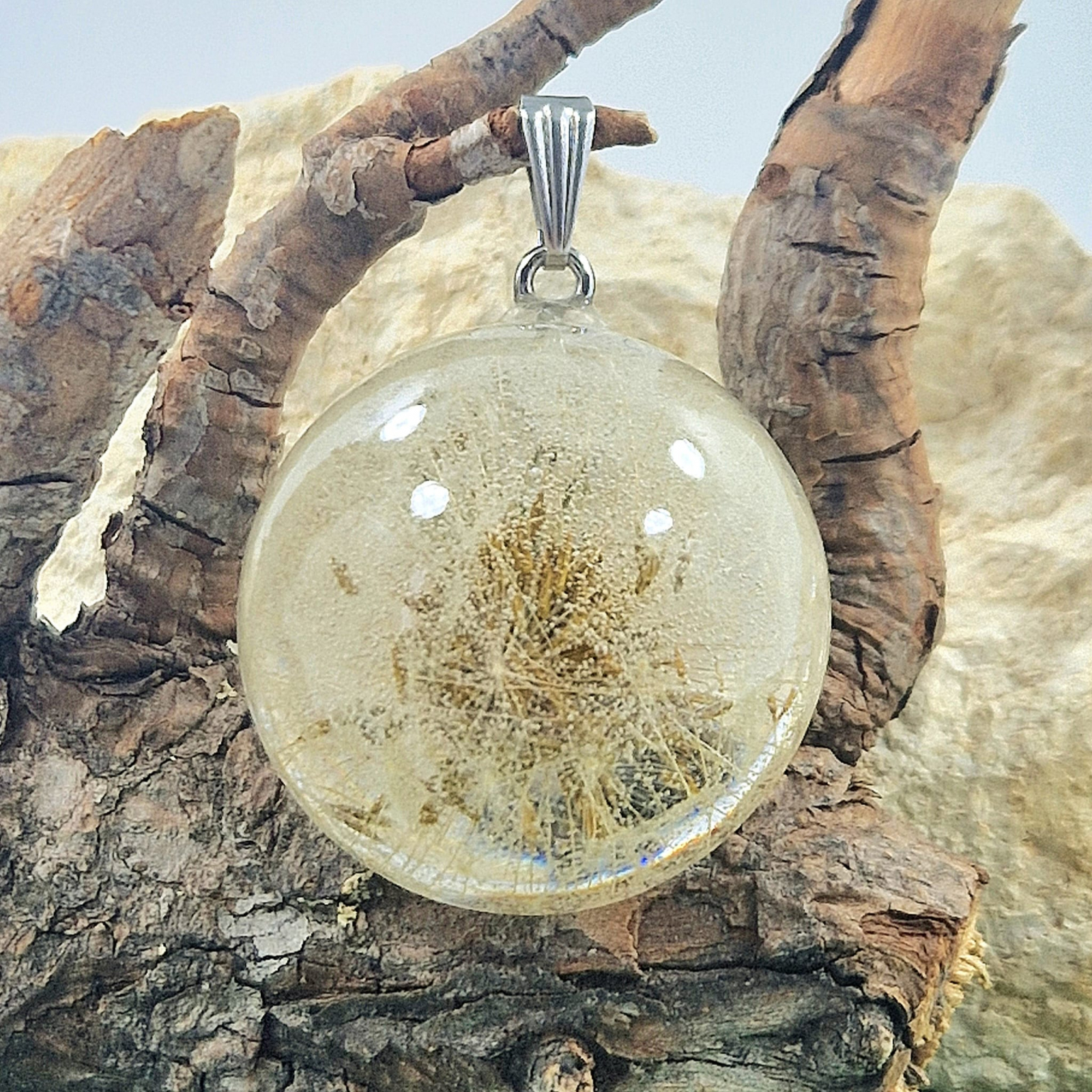 - Felhasznált anyagok: UV-álló gyanta, pitypang, rozsdamentes acél – Természetes, tartós és bőrbarát anyagok.