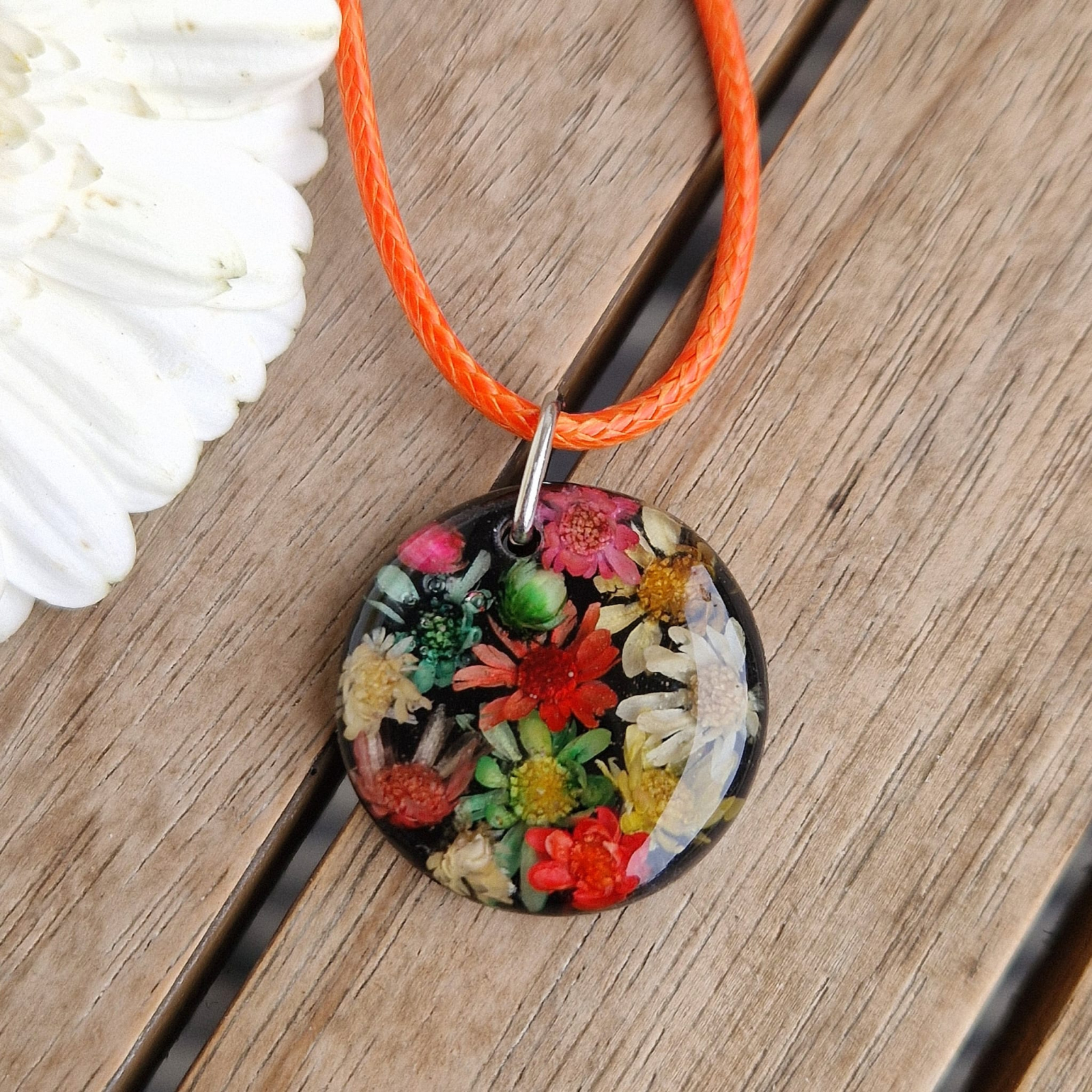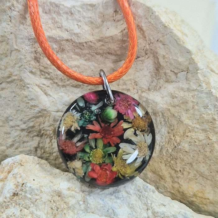Kézműves nyaklánc szárított természetes virágokból és gyantából – Természet ihlette ékszer