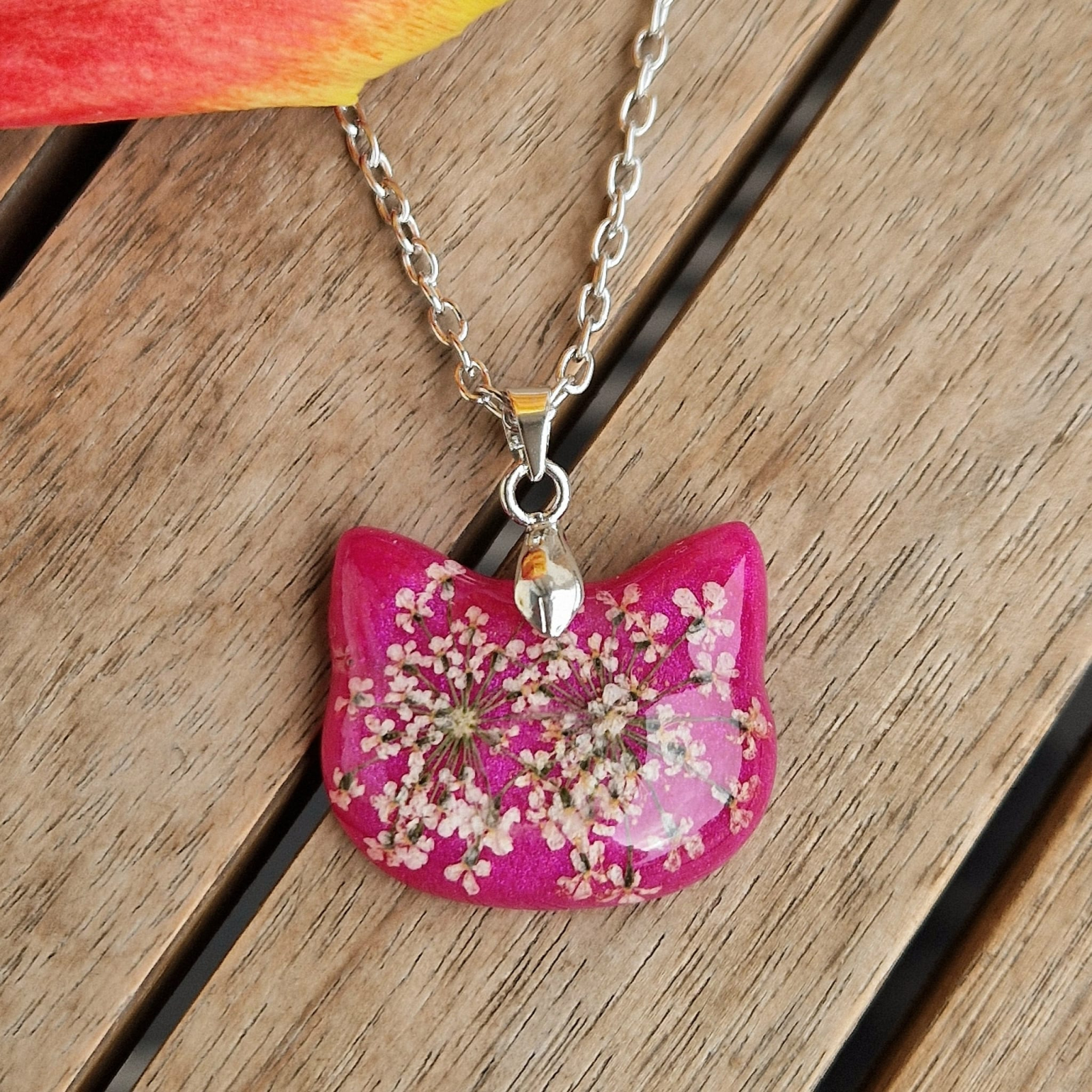 Kézműves nyaklánc szárított természetes virágokból és gyantából – Természet ihlette ékszer