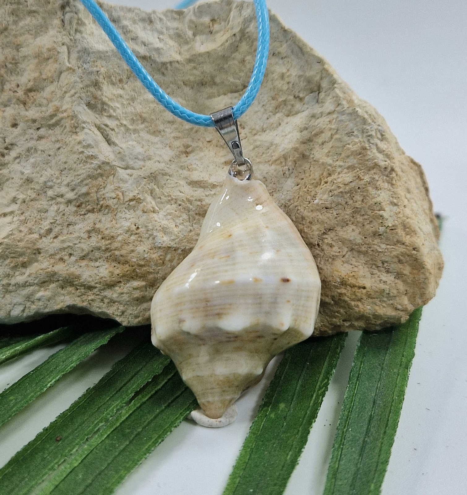 UV-álló gyanta, valódi tengeri csillag és kagyló, üveg gyöngy, rozsdamentes acél (medál), gyantázott zsinór + fémötvözet (nyaklánc) – természetes, tartós és bőrbarát anyagok.