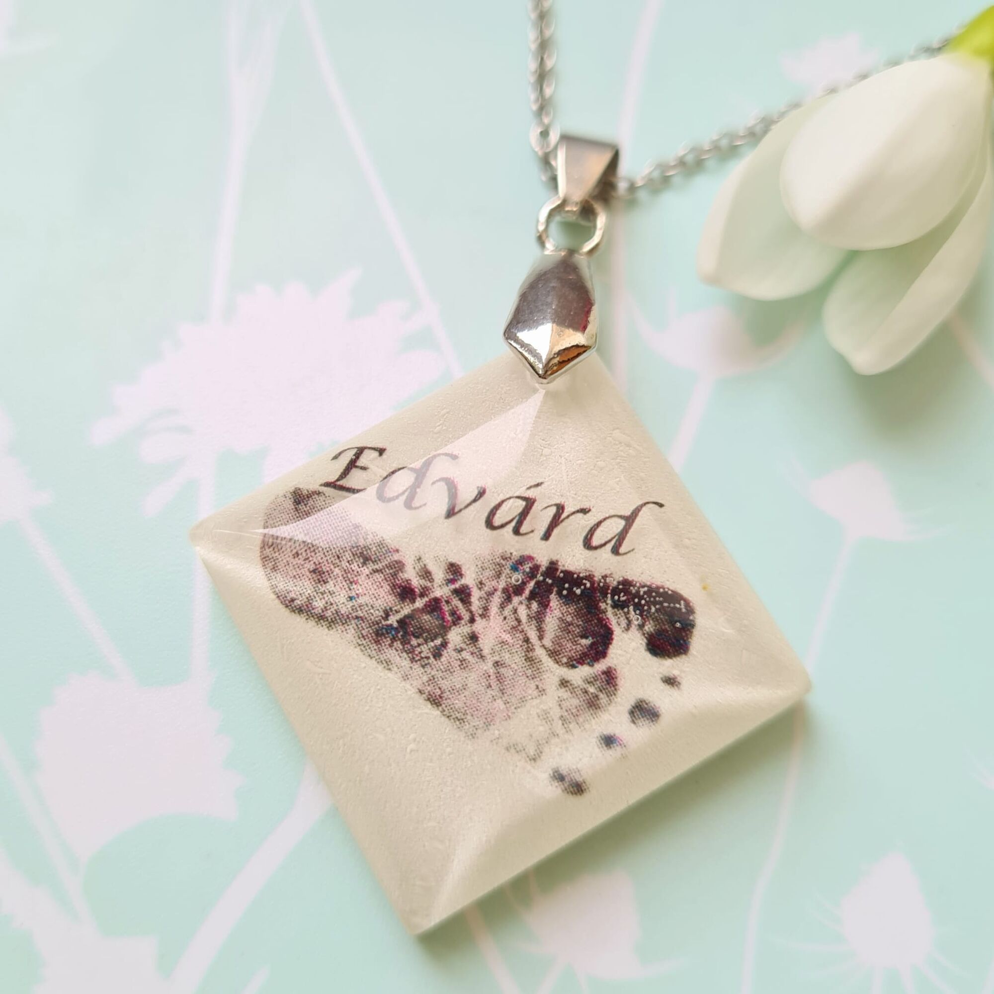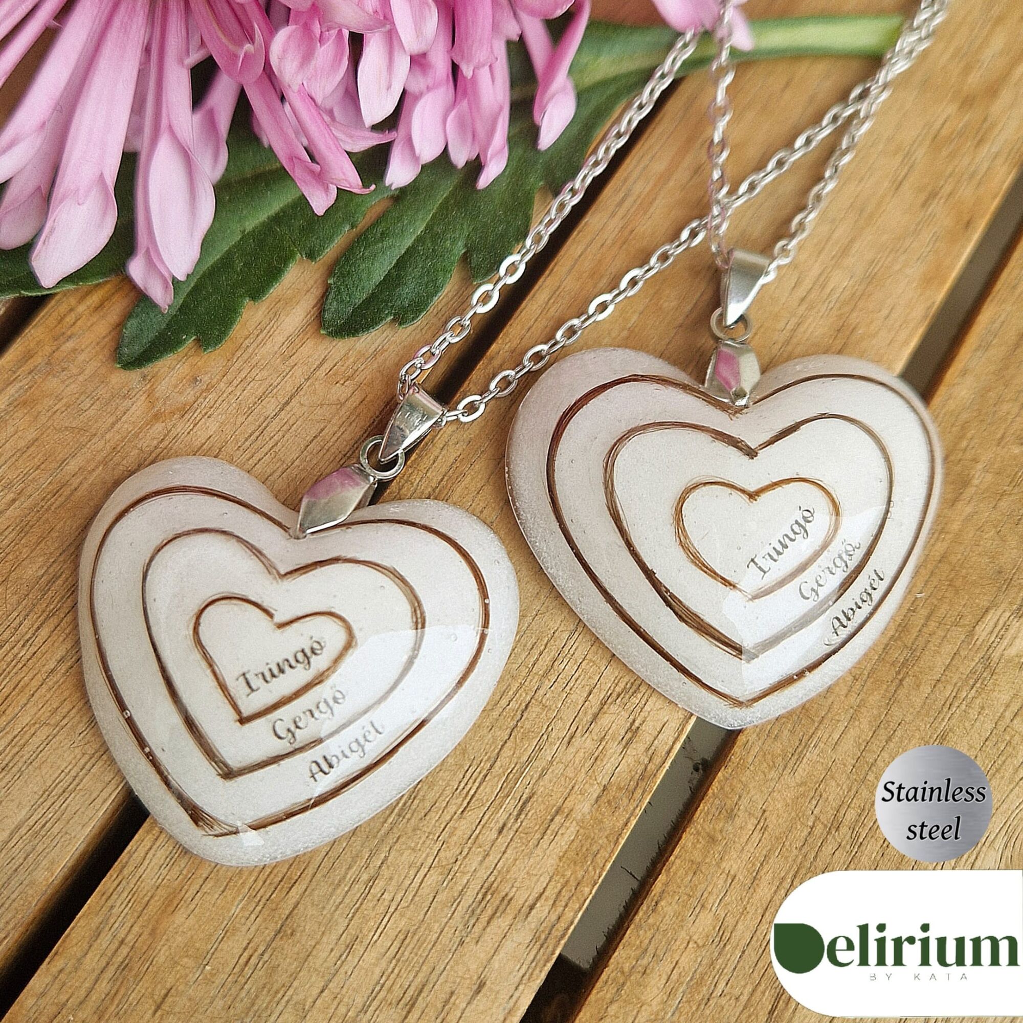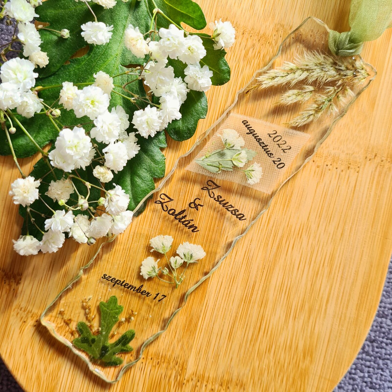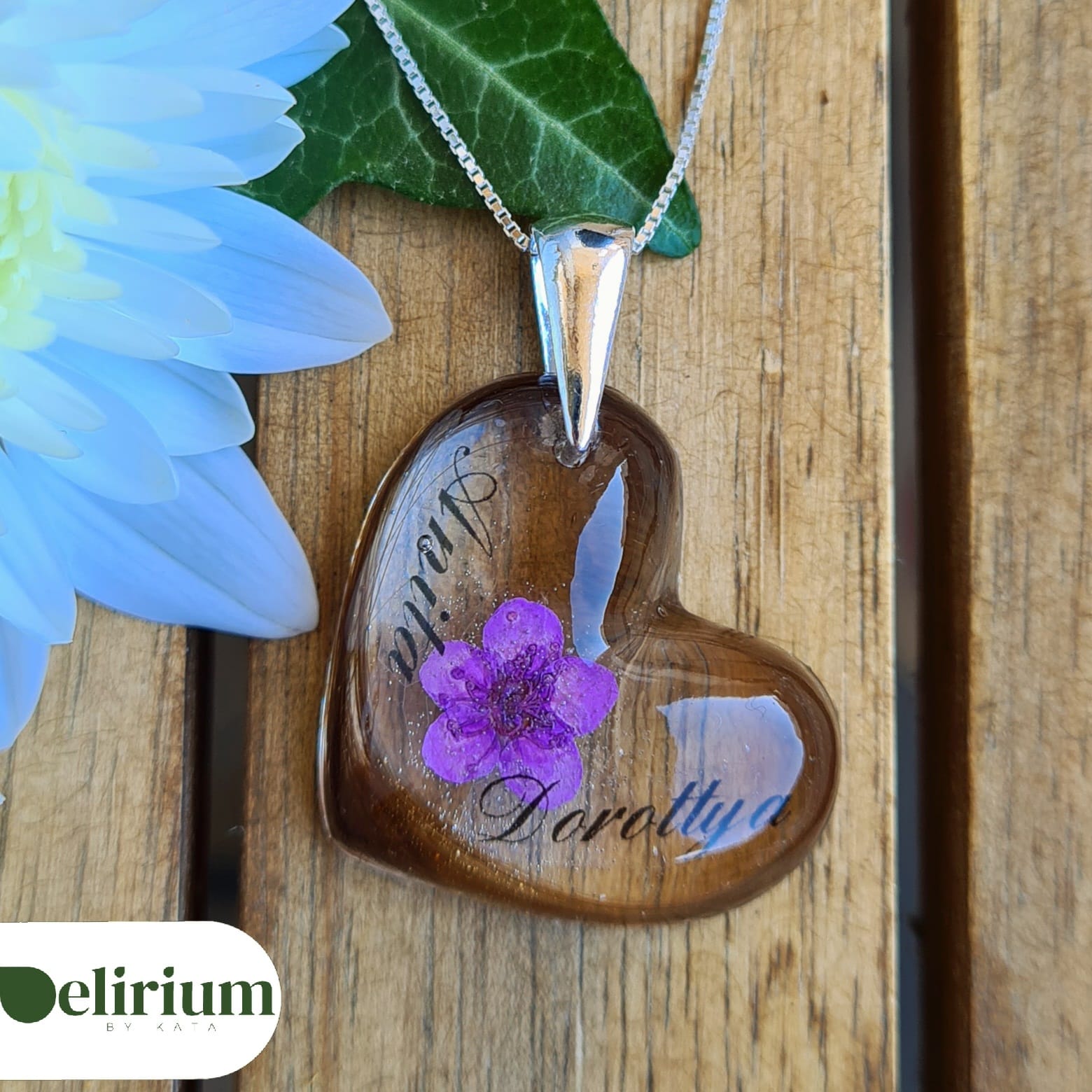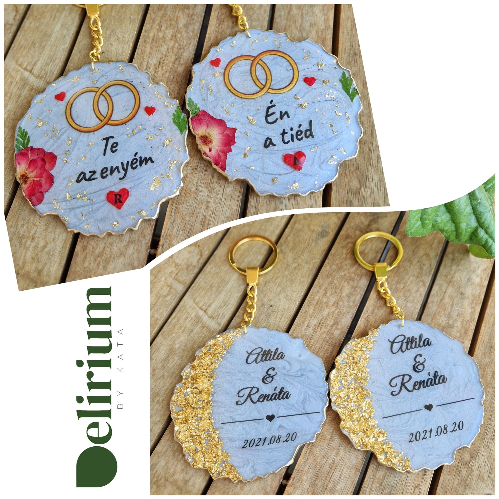 - În bijuteriile și accesoriile create pot fi adăugate una sau două cuvinte scrise sau o dată, pentru a oferi un plus de eleganță și memorabilitate momentului păstrat în rășină.