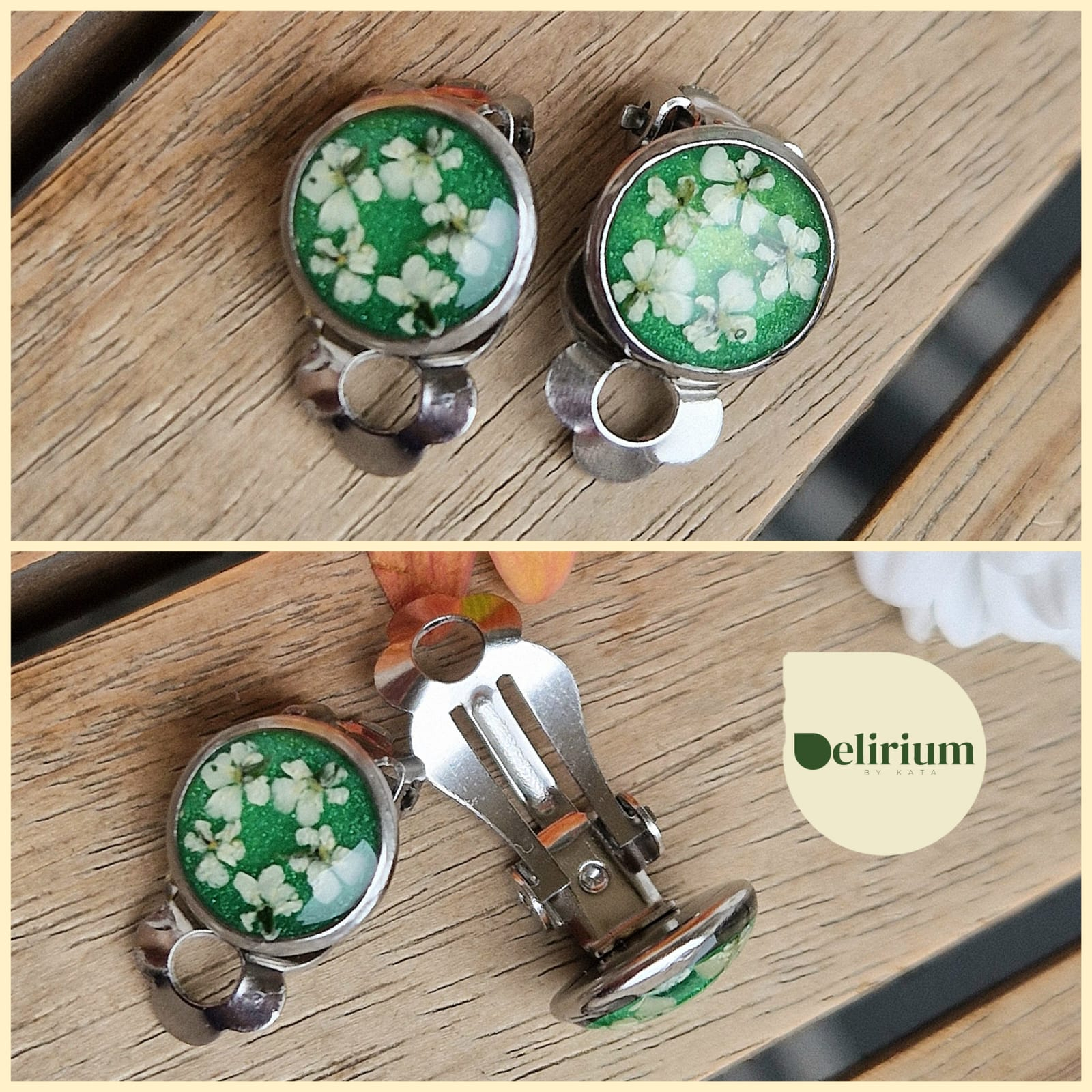 Fiecare pereche de cercei este unică, datorită elementelor naturale încapsulate în rășină. Rășina cristalină, rezistentă la UV, asigură că florile nu își pierd strălucirea în timp și nu se îngălbenesc. Rășina este ușoară, oferind un efect similar sticlei, dar fără a fi fragilă, garantând astfel durabilitatea și confortul pe termen lung. În plus, bijuteria nu necesită întreținere specială. Mai multe informații despre întreținere găsiți la secțiunea „Întreținerea și îngrijirea bijuteriilor și accesoriilor”.