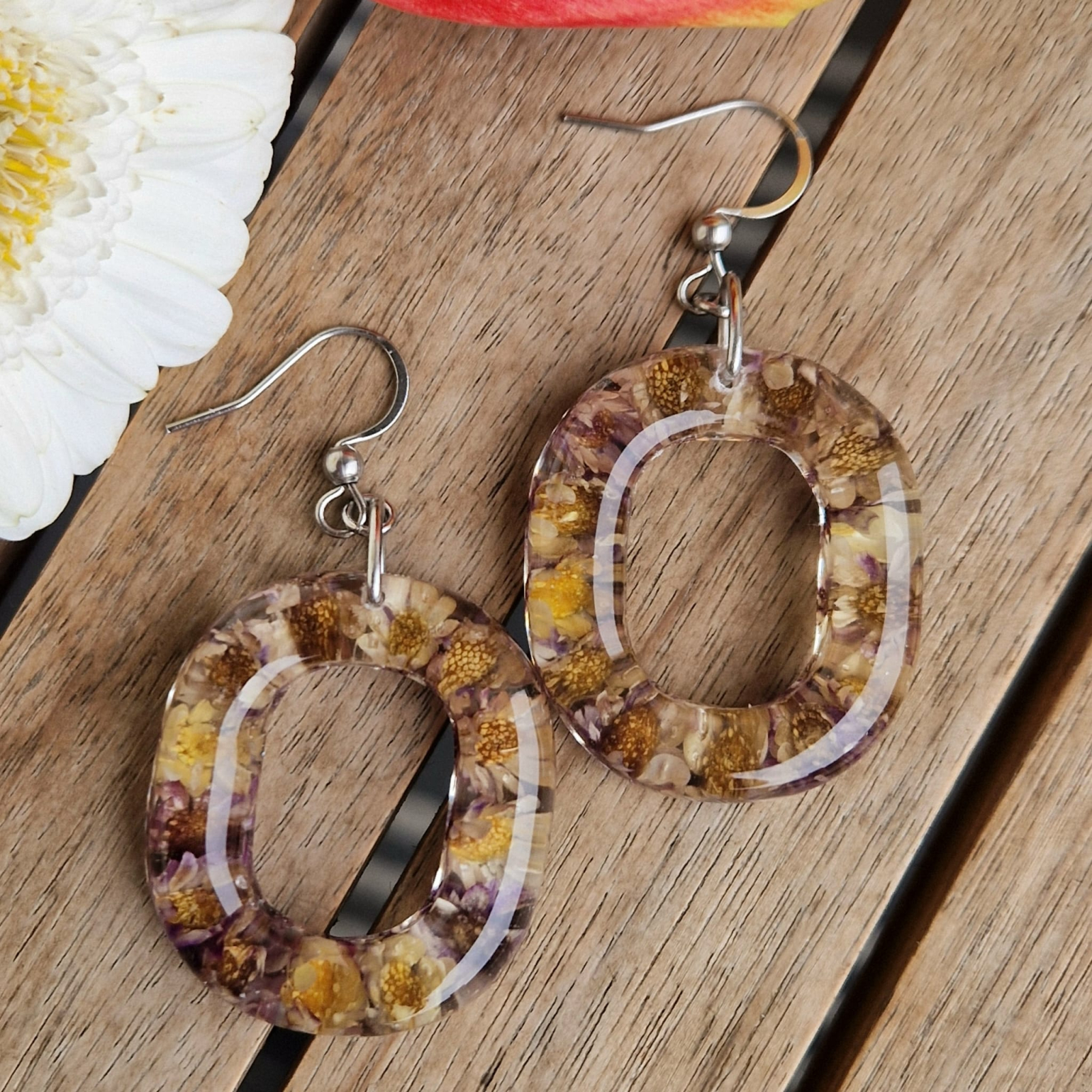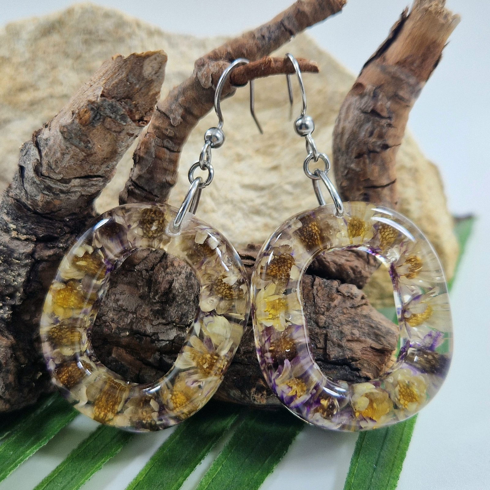 Acești cercei unici, realizați manual, surprind frumusețea pură a naturii. Detaliile fermecătoare ale floriilor si plantelor naturale încorporate în rășină dau viață acestei bijuterii fine, în timp ce rășina rezistentă la UV asigură păstrarea culorilor și prospețimii florii. Oțelul inoxidabil garantează durabilitatea cerceilor, fiind ușor de purtat atât zi de zi, cât și la ocazii speciale, atunci când dorești să-ți evidențiezi stilul apropiat de natură. Oțelul inoxidabil este un material extrem de durabil, hipoalergenic, rezistent la coroziune și își păstrează strălucirea, ceea ce îl face o alegere excelentă pentru bijuterii pe termen lung.