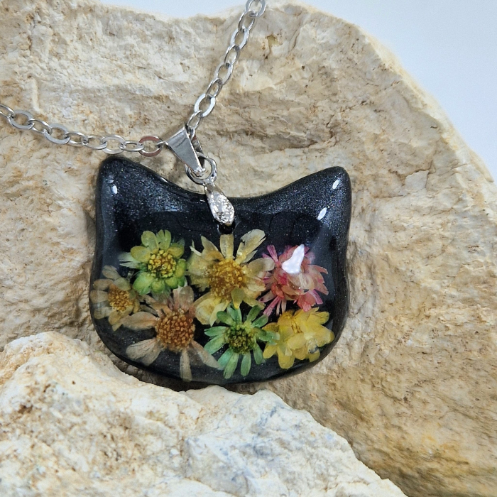 Colier artizanal cu flori naturale și rășină – Bijuterie inspirată de natură