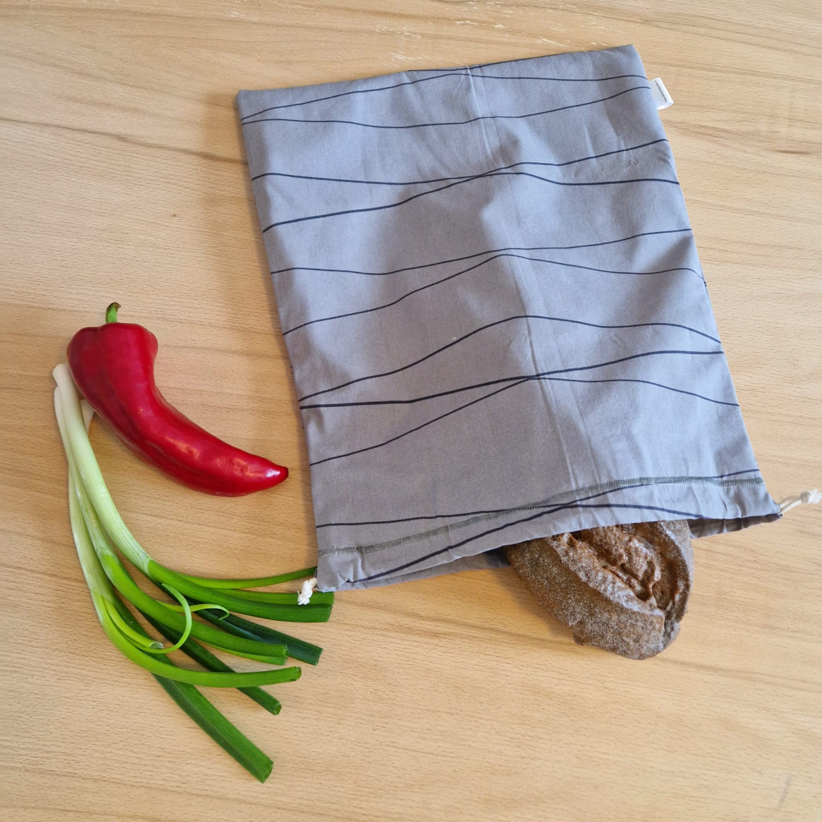 Pune pâinea sau produsele de panificație direct în săculeț și leagă gura săculețului cu panglica din bumbac atașată. Asigură-te că pâinea este pusă "dezbrăcată", fără alte materiale de ambalare, pentru a permite săculețului să respire corespunzător.