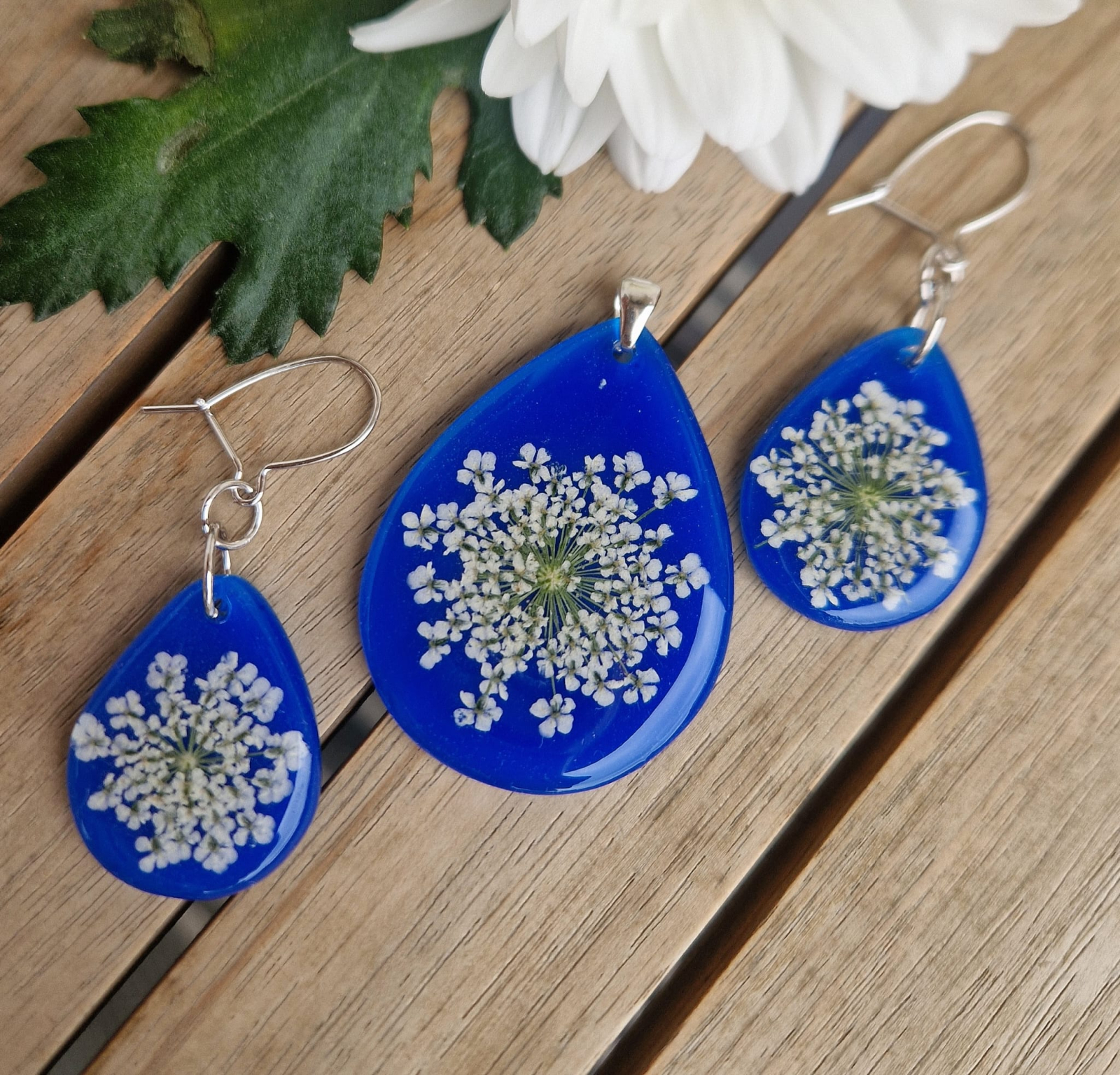 • Materiale utilizate: Rășină rezistentă la UV, flori de morcov, argint 925 – Materiale naturale, durabile și prietenoase cu pielea.
